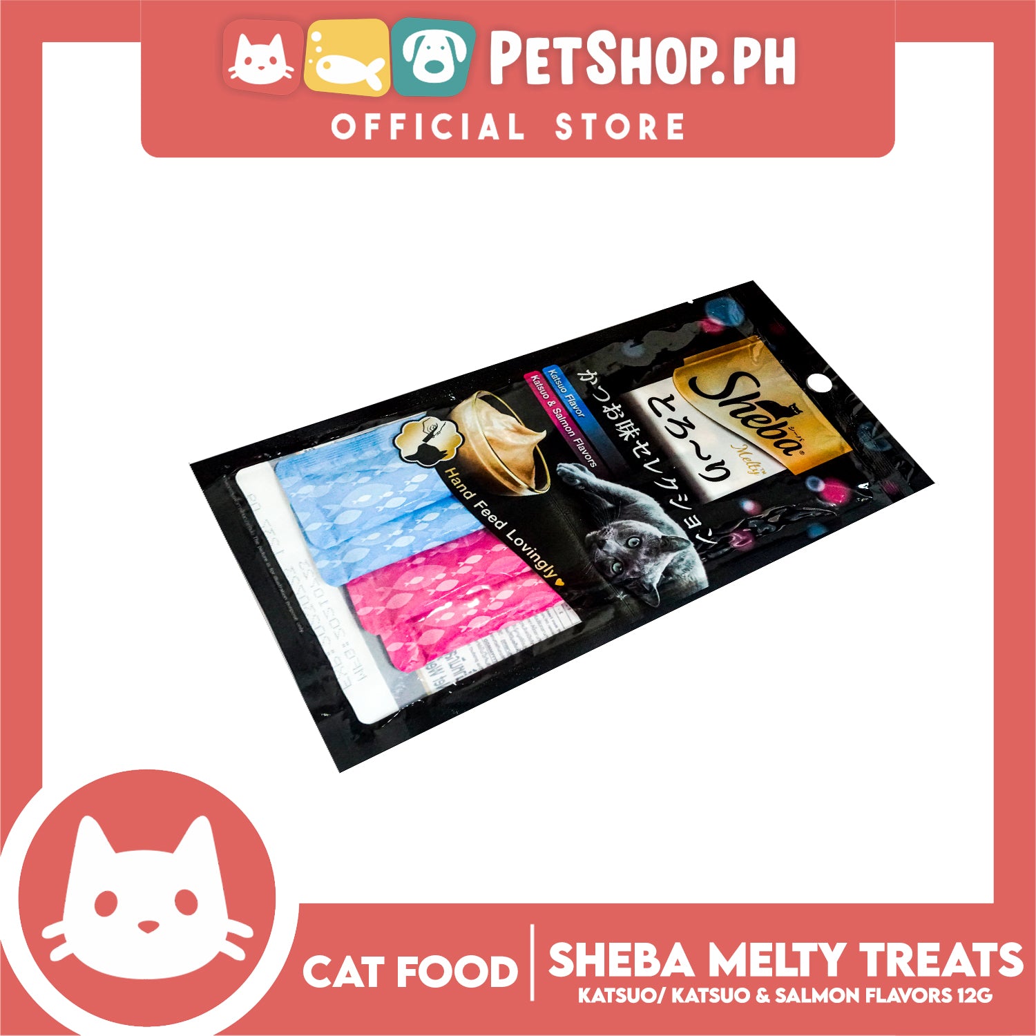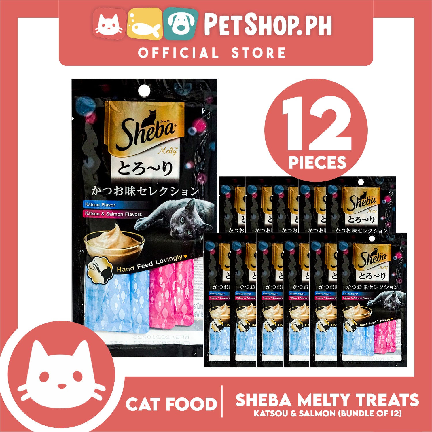 12pcs Sheba Melty Katsuo and Salmon Flavors Hand Feed Lovingly 12g x 48 sachets Cat Treats