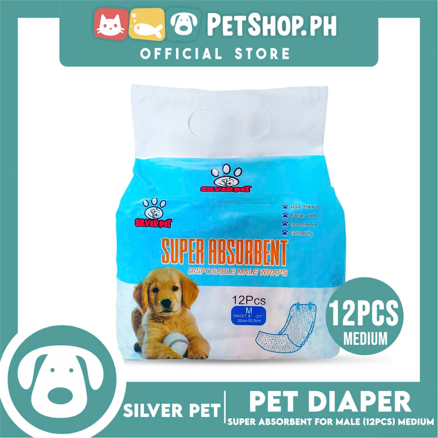 12pcs Silver Pet Super Absorbent Disposable Male Dog Wrap/ Diaper Medium