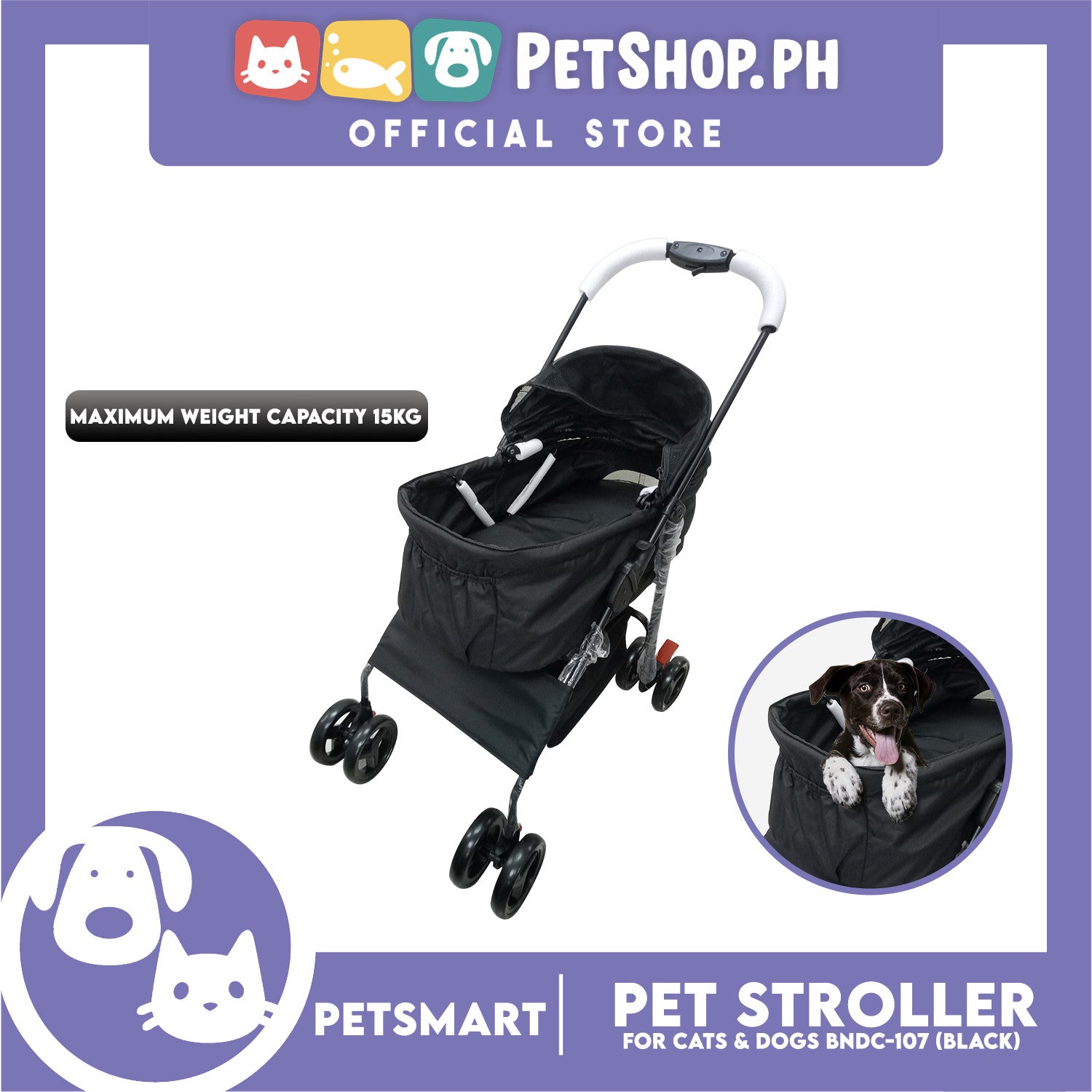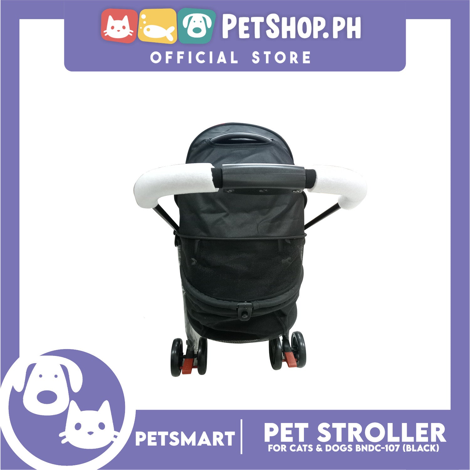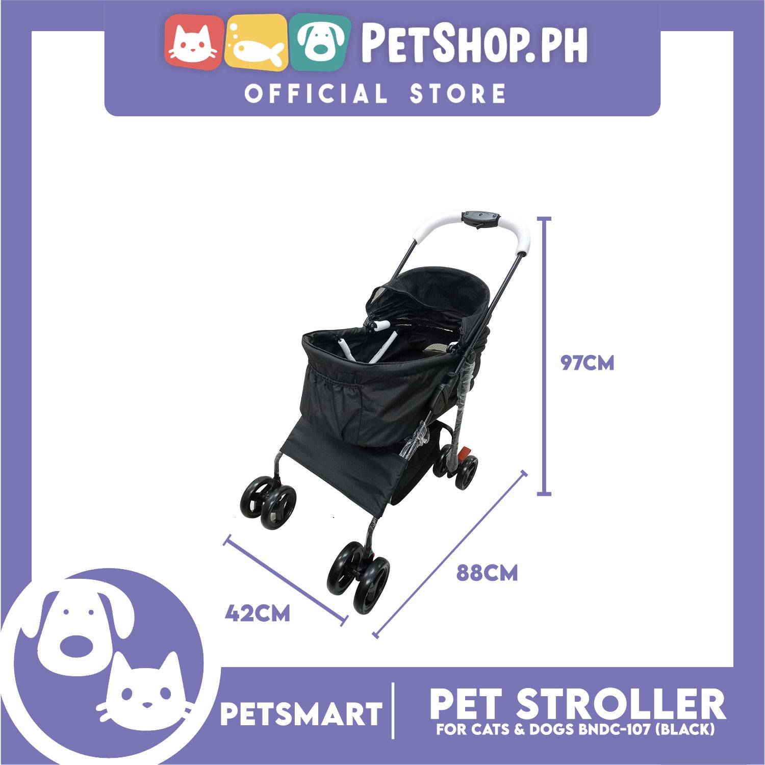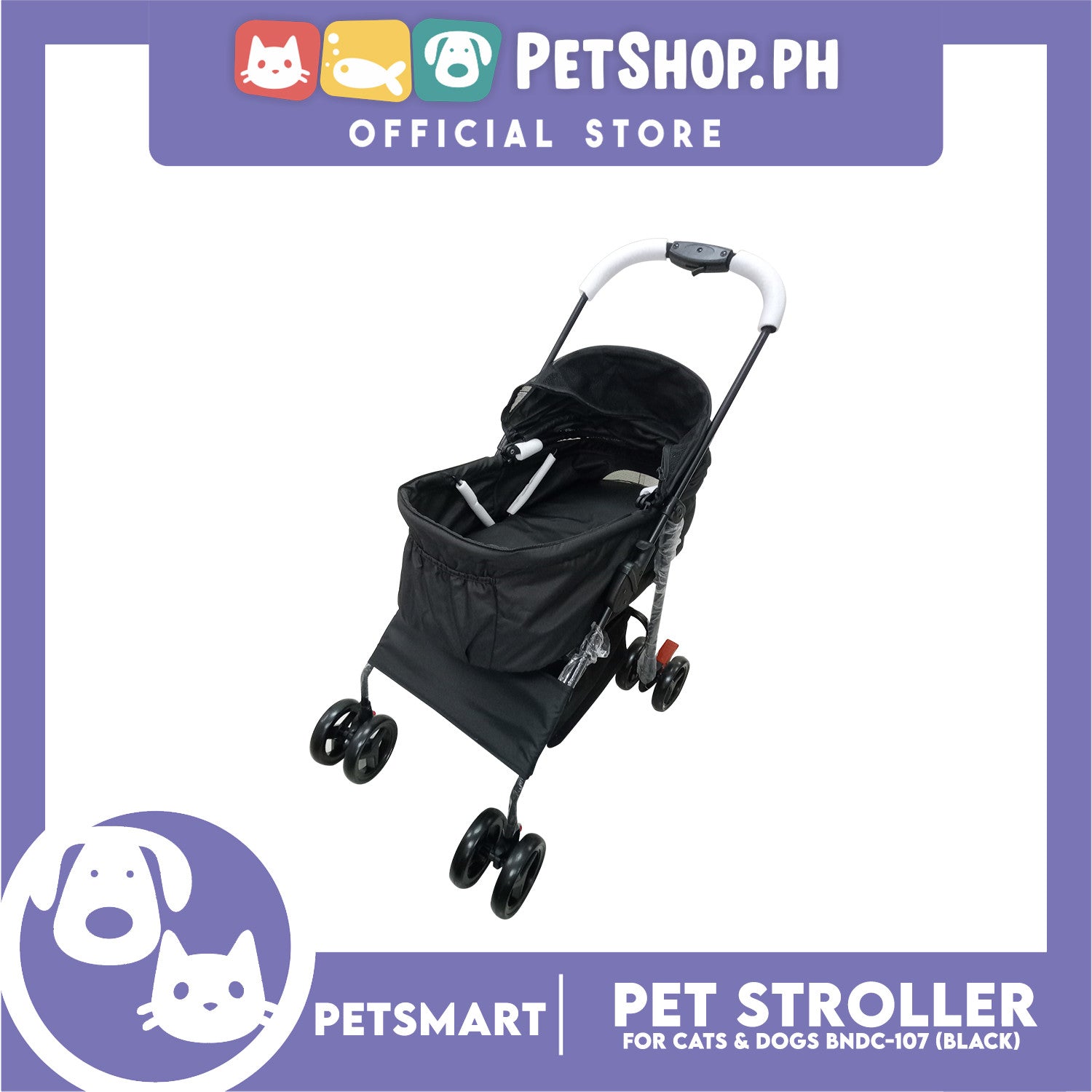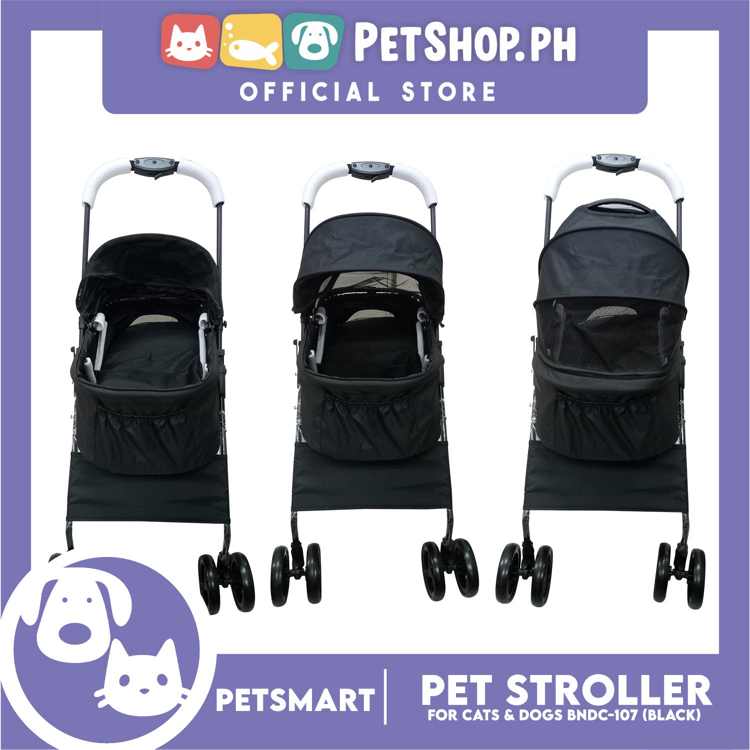2-in-1 Detachable and Foldable Pet Cat & Dog Stroller Pet Carrier Trolley (Black) BNDC-107