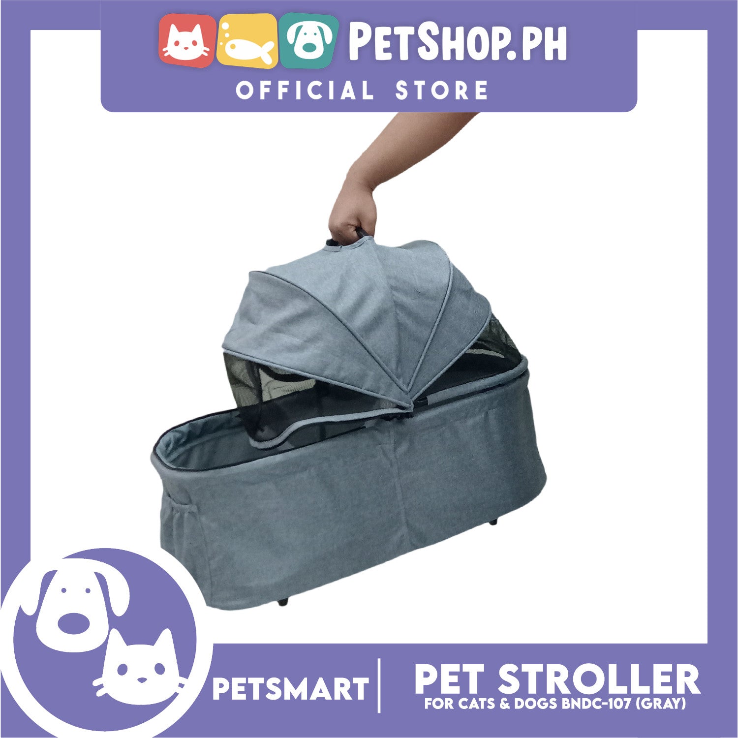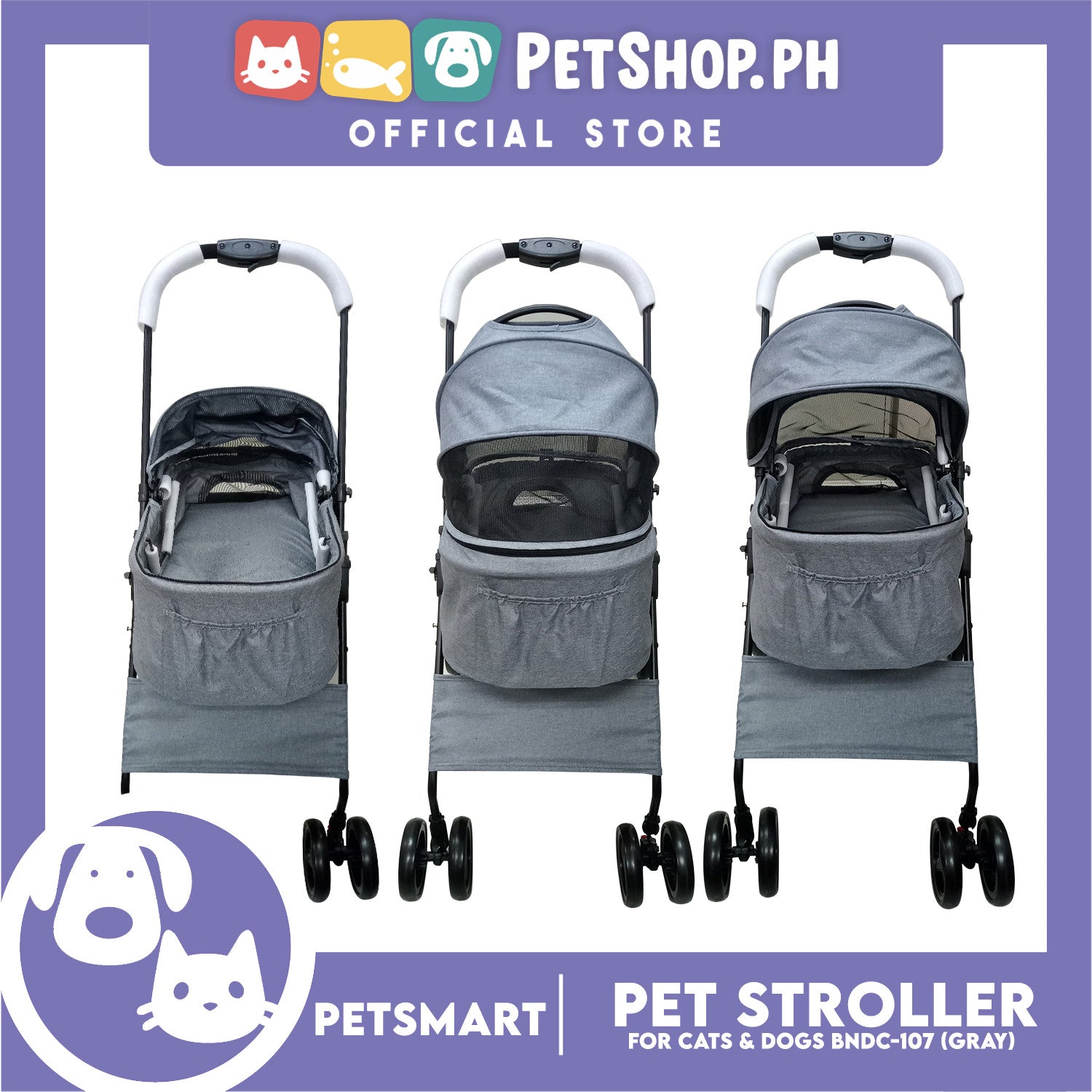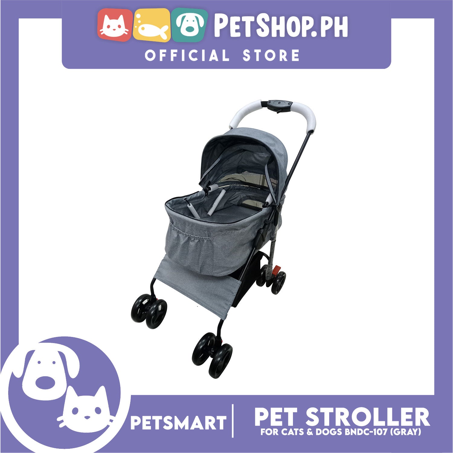 2-in-1 Detachable and Foldable Pet Cat & Dog Stroller Pet Carrier Trolley (Gray) BNDC-107