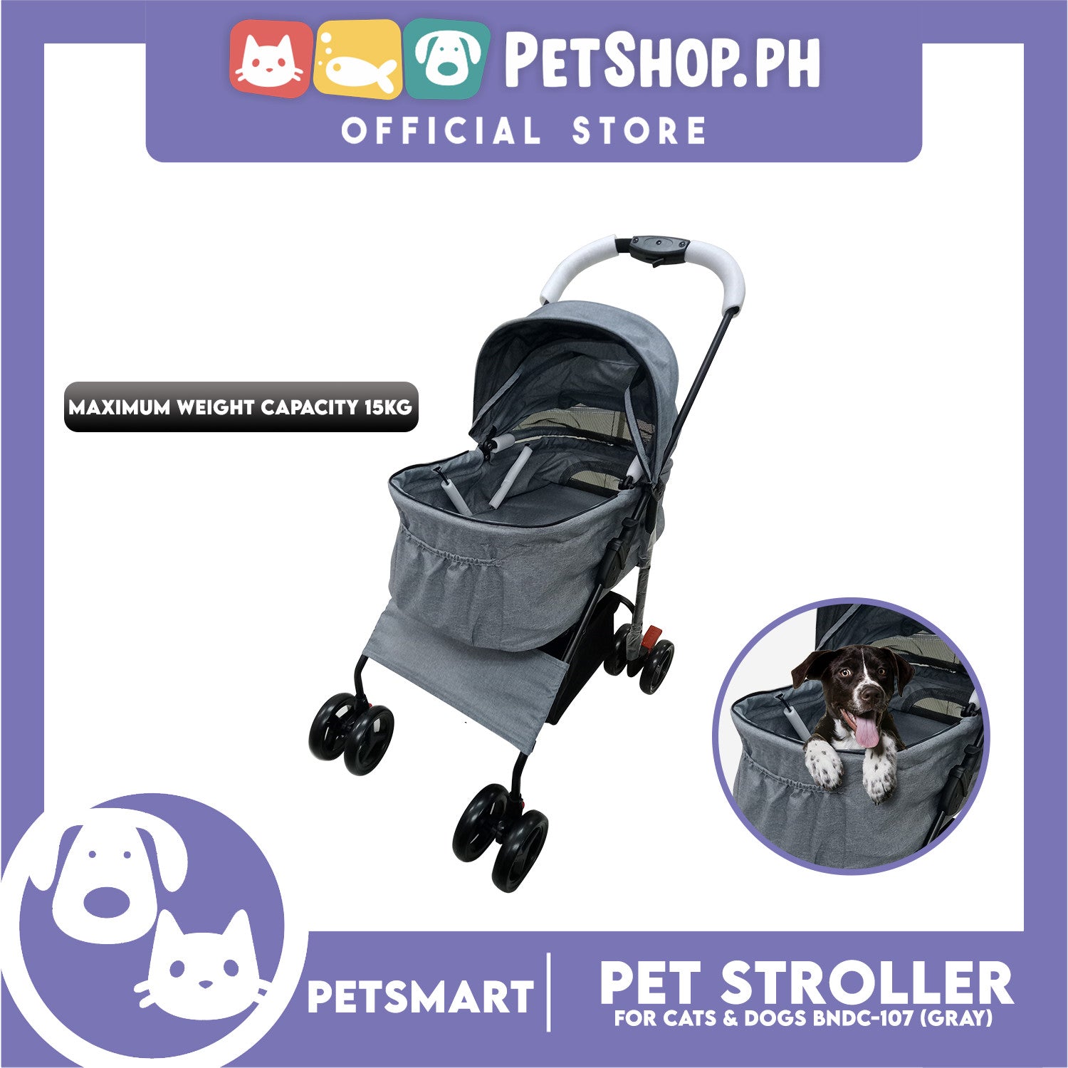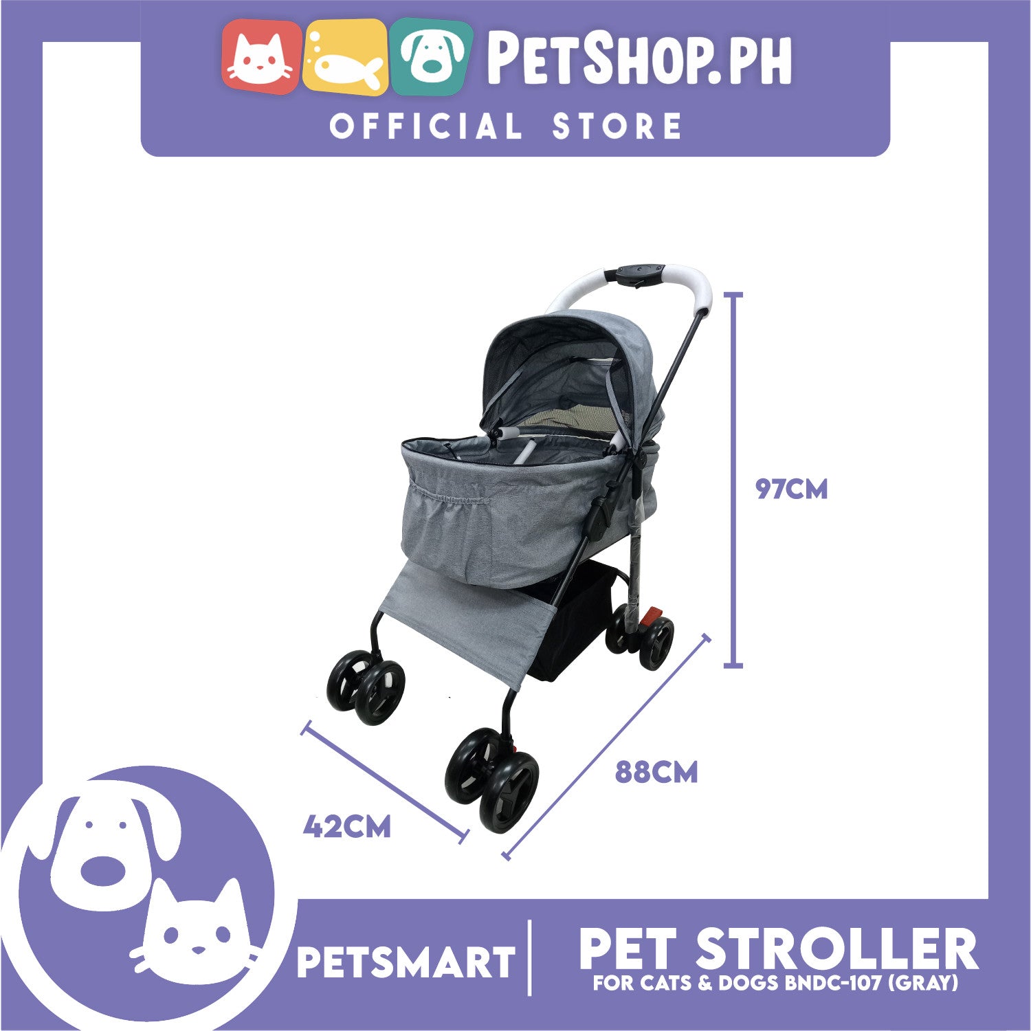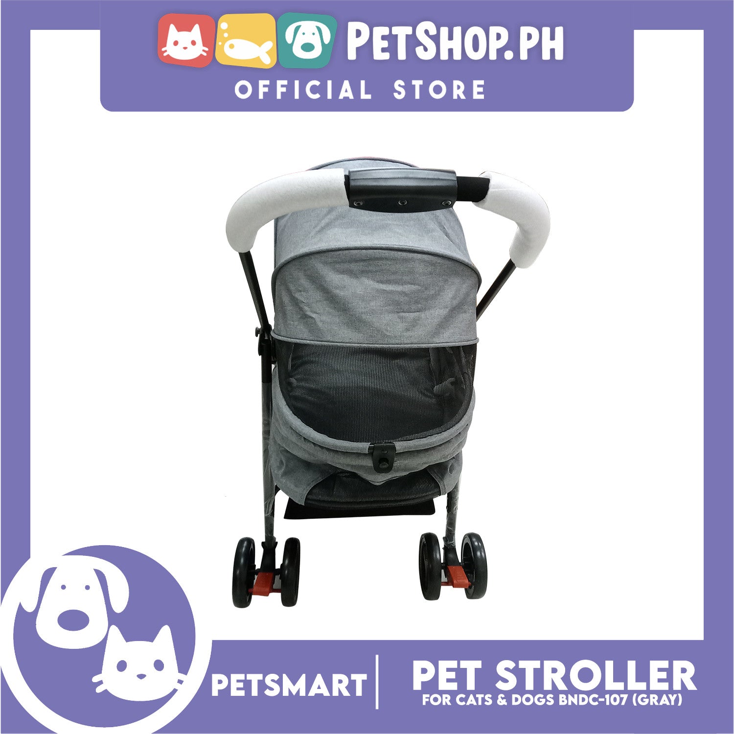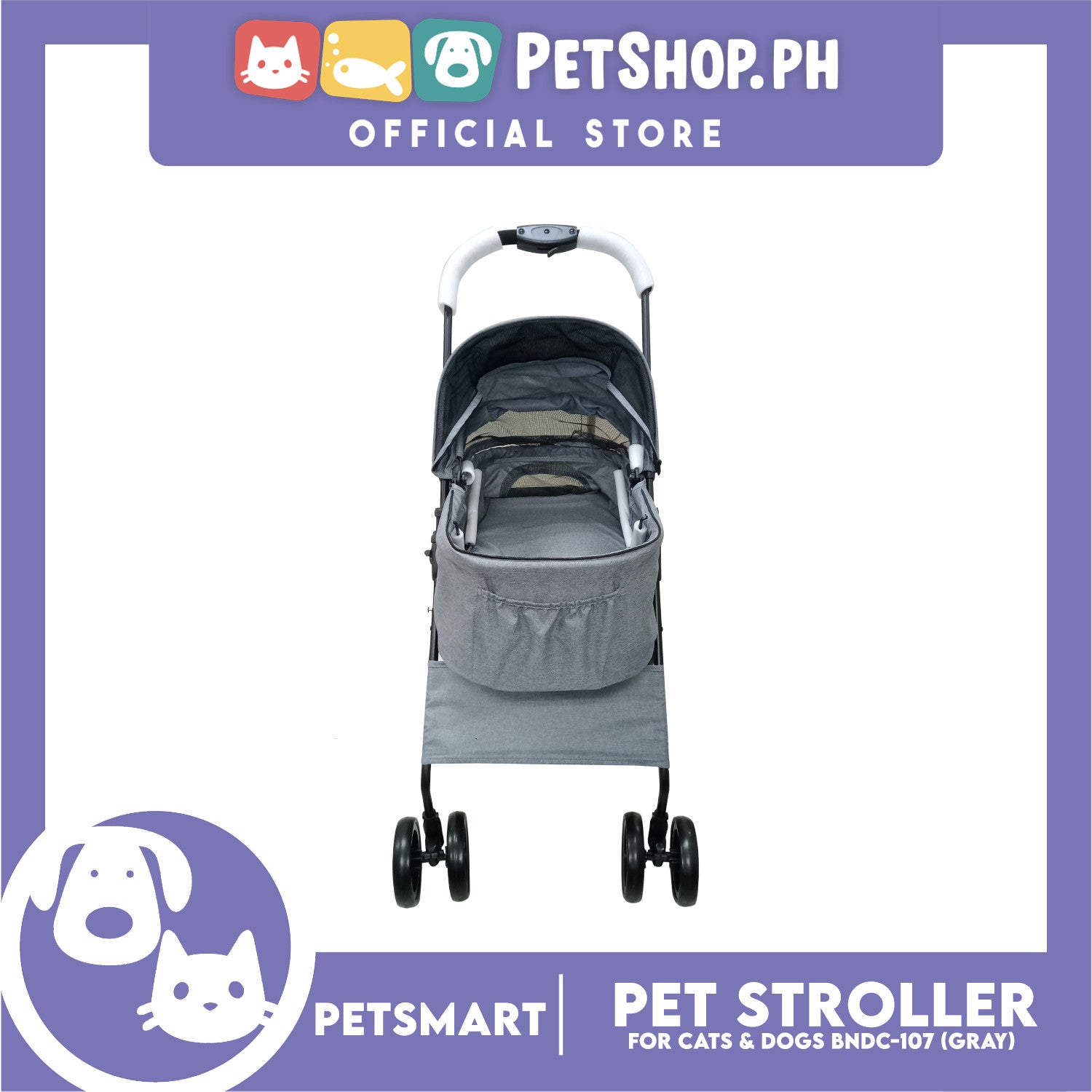 2-in-1 Detachable and Foldable Pet Cat & Dog Stroller Pet Carrier Trolley (Gray) BNDC-107