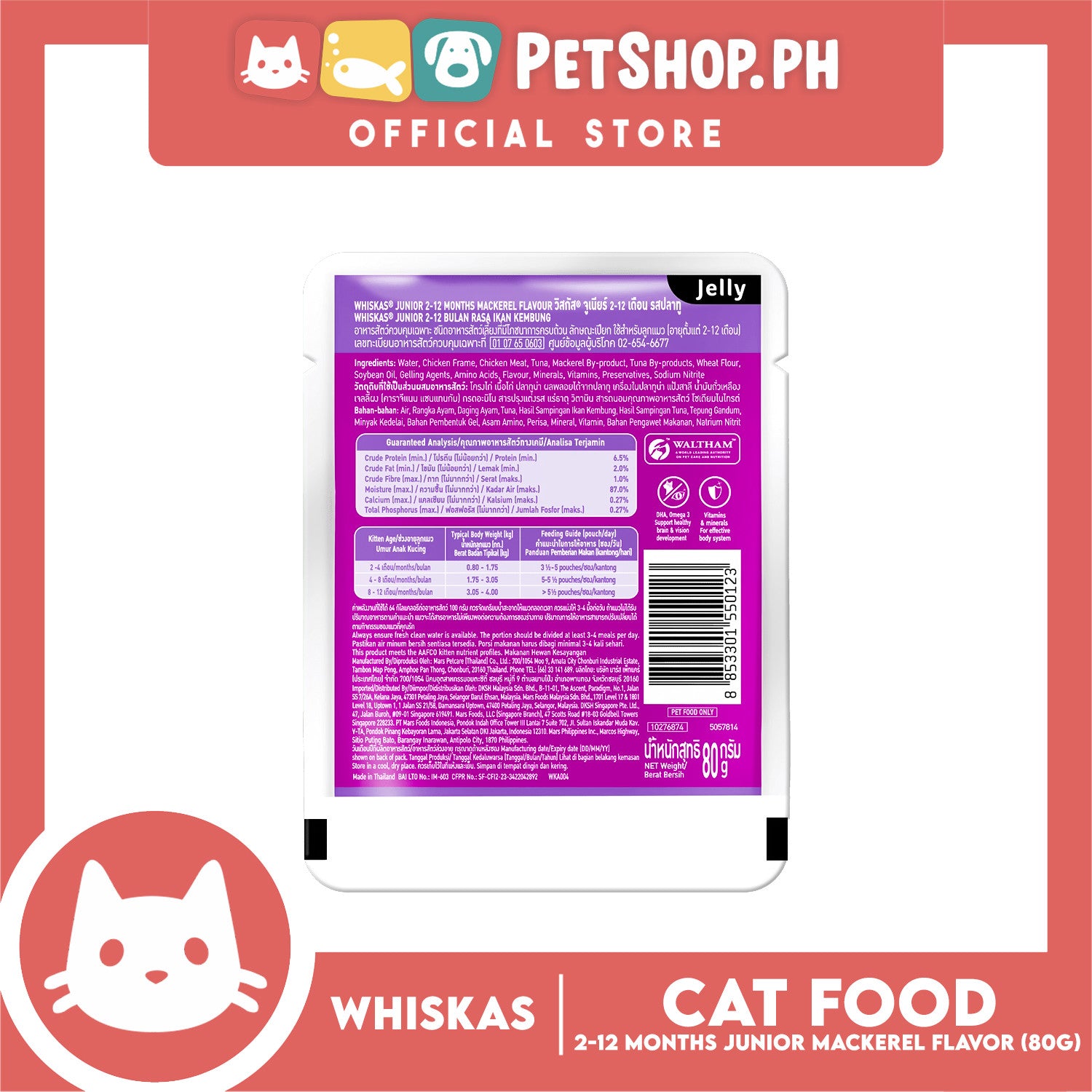 6pcs Whiskas Junior Mackerel Pouch Wet Cat Food 80g