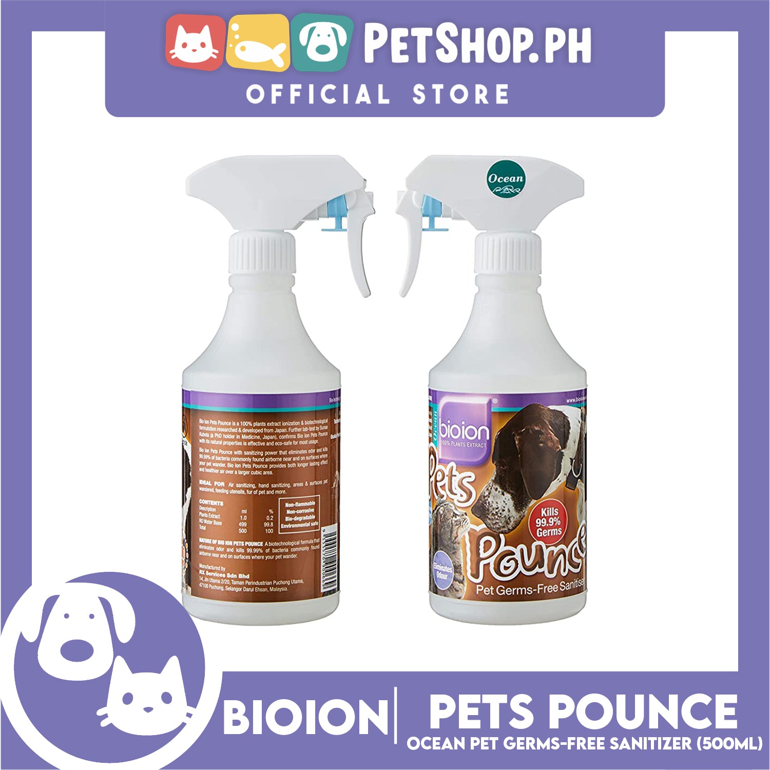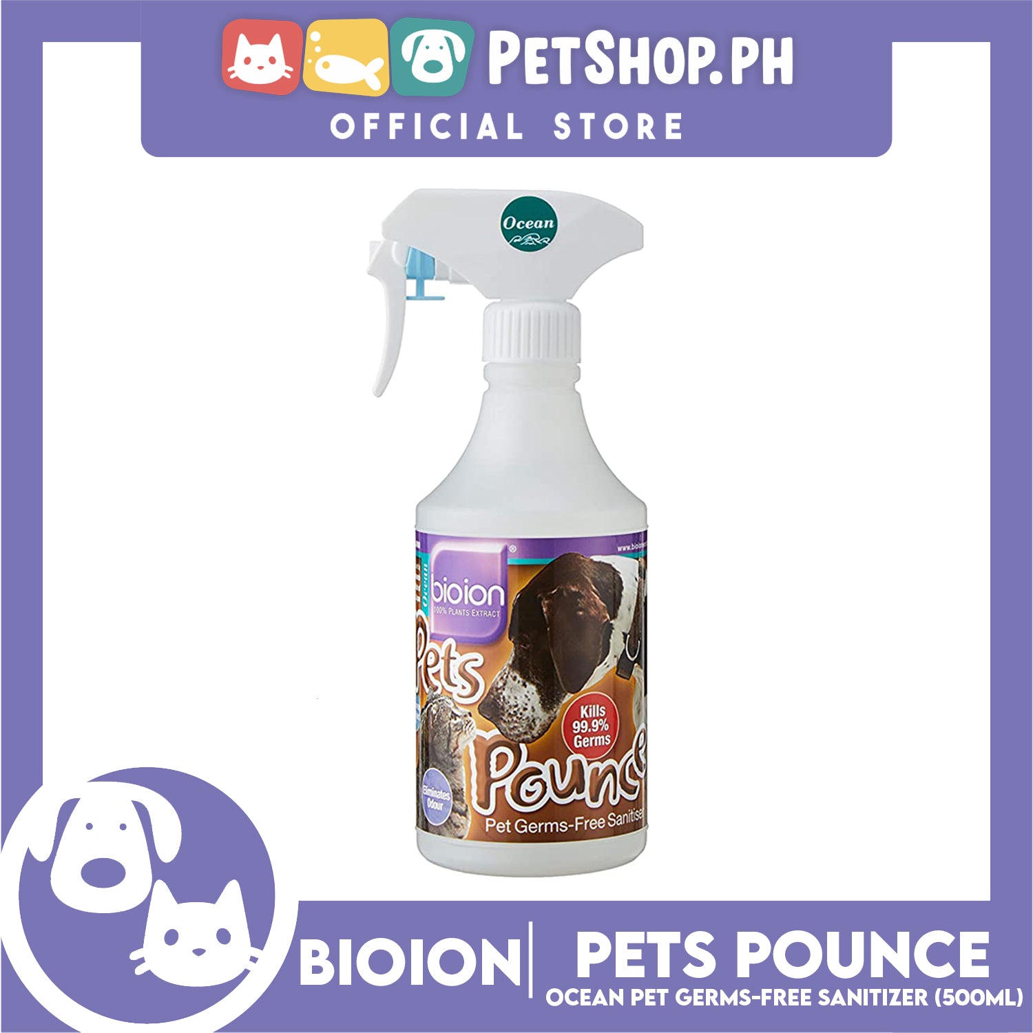 Bio Ion Pets Pounce Pet Germ-Free Sanitizer 500ml (Ocean)