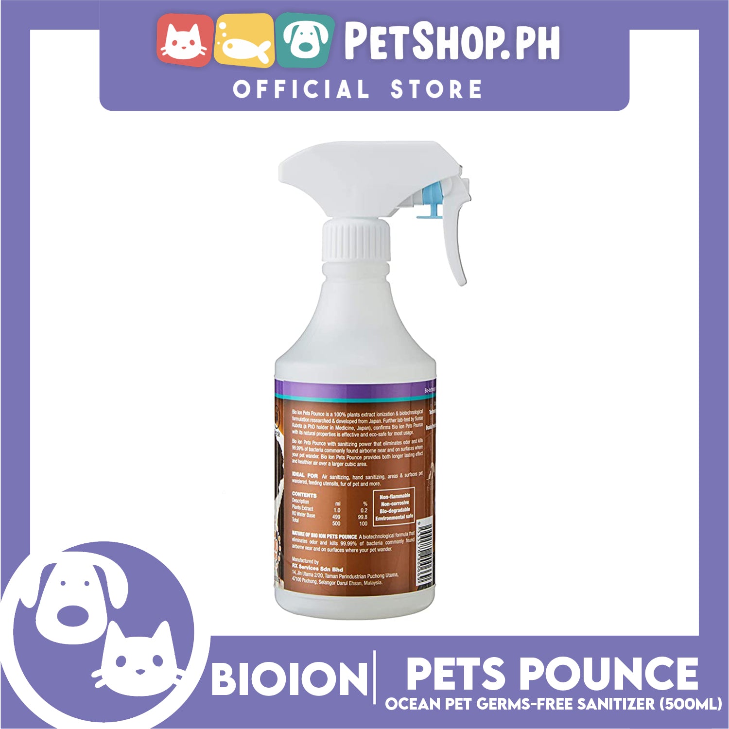 - It is safe to use Bioion pets pounce germ-free sanitizer on these furry pets as it is an eco-safe, fragrance-free deodorizer with natural plant extract.