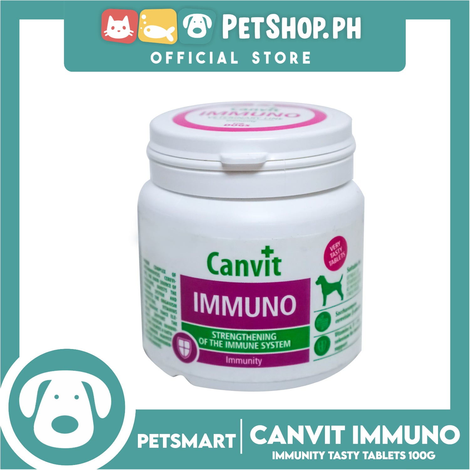 - Canvit Immuno 100g dog supplement is a complex of activated beta-glucans, mannan oligosaccharides (MOS), vitamins, and trace elements to actively support and boost the immune system.