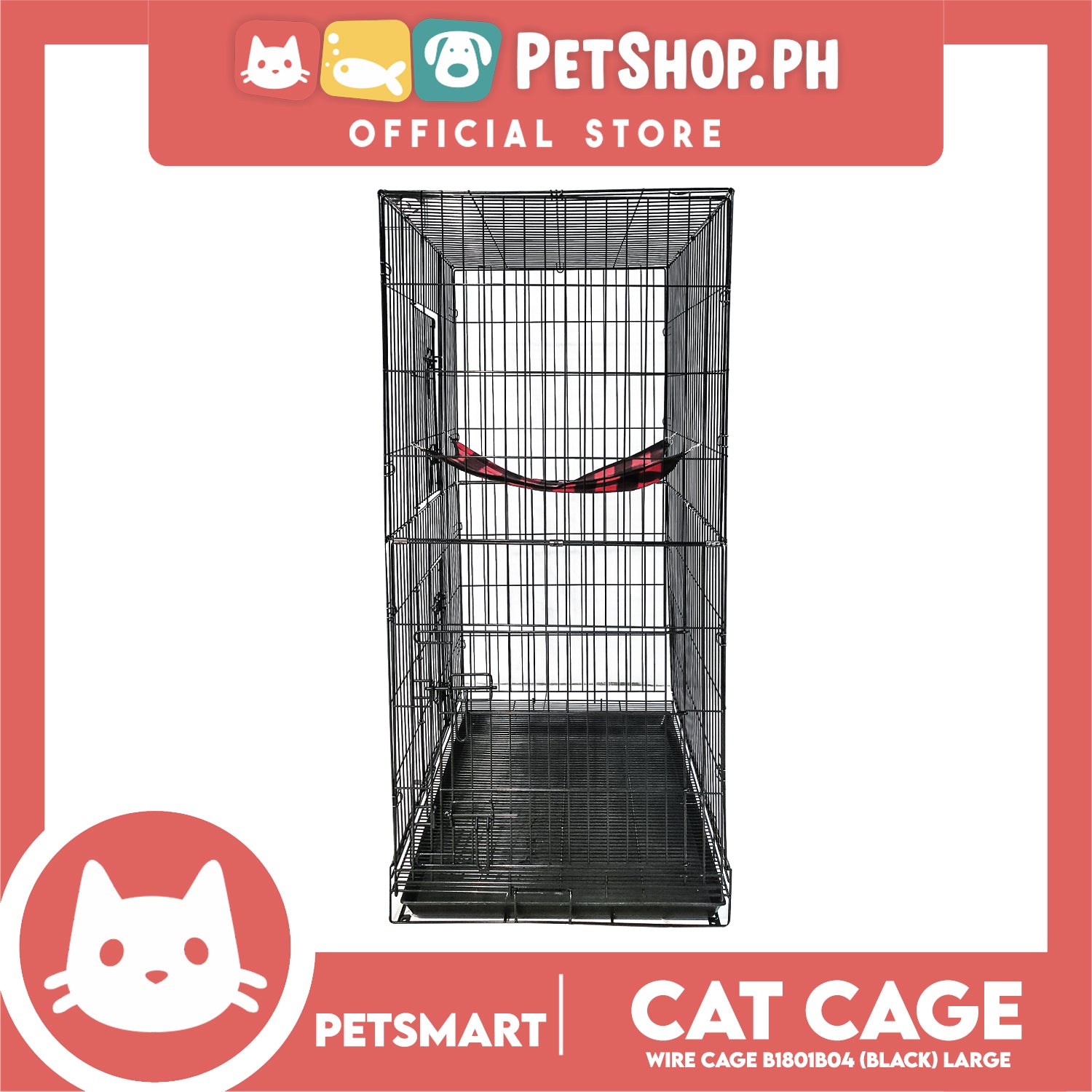 Cat Cage B1801B04 (Black) Wire Flooring, Painted Black Wire Cage, Comes With Tray Underneath 92cm x 55.5cm x 120cm Pet Cage, Pet House