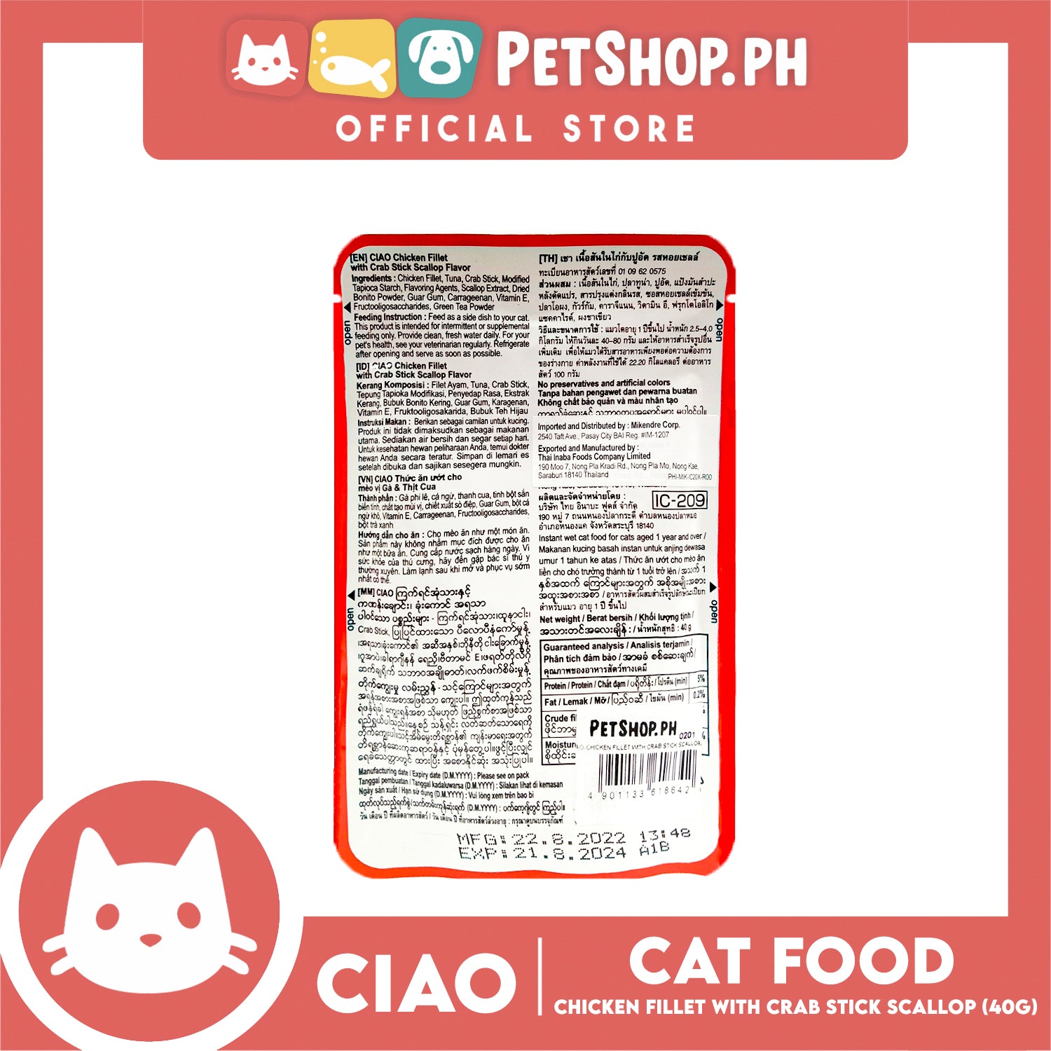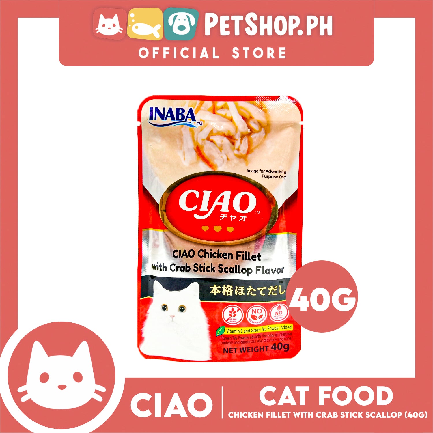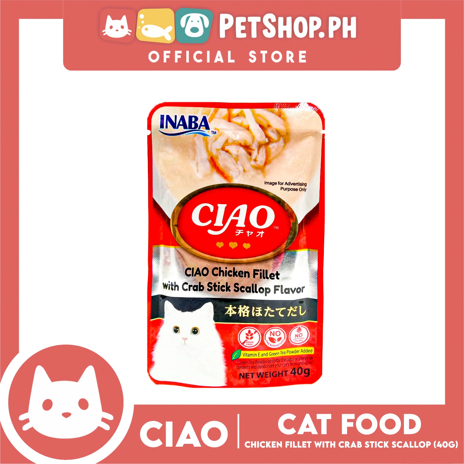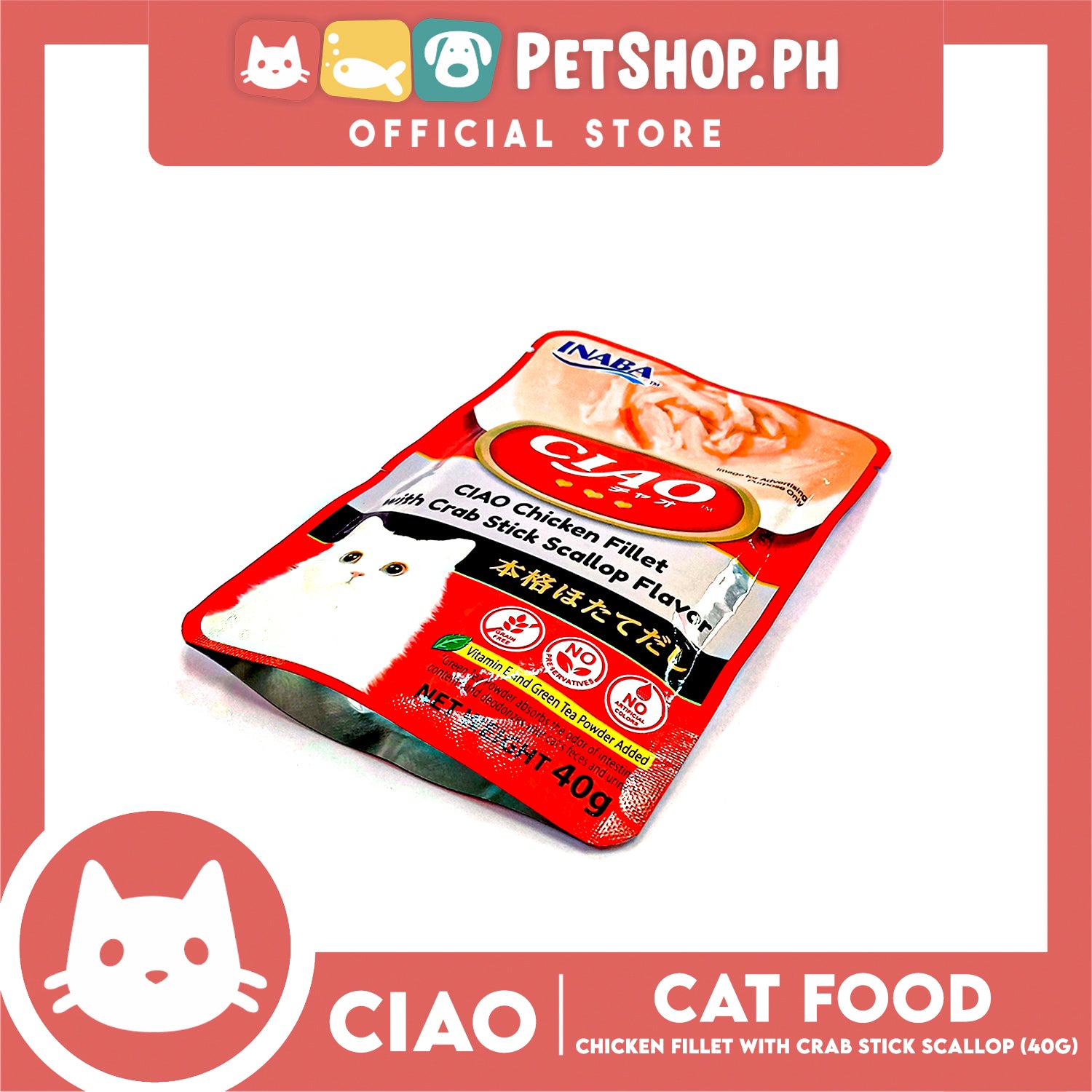 Ciao Chicken Fillet With Crab Stick Scallop Flavor 40g (IC-209) Cat Wet Food