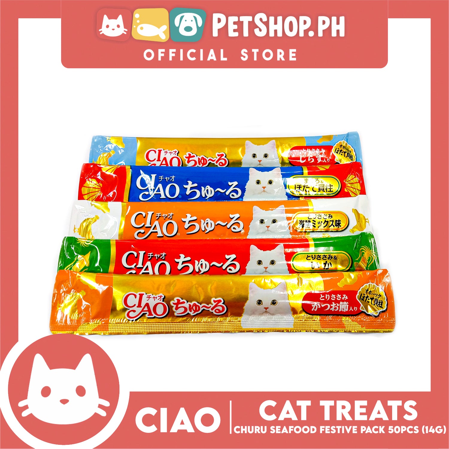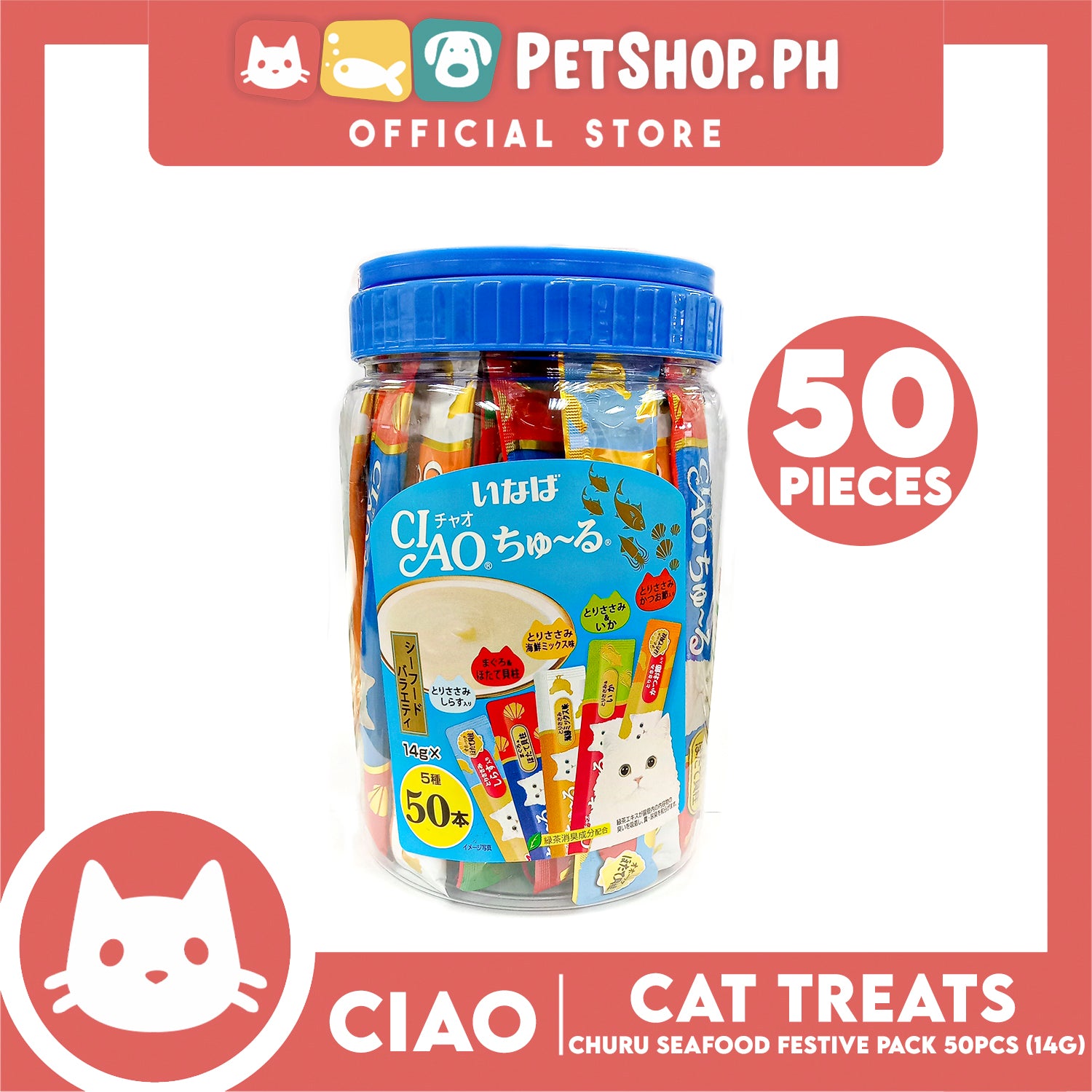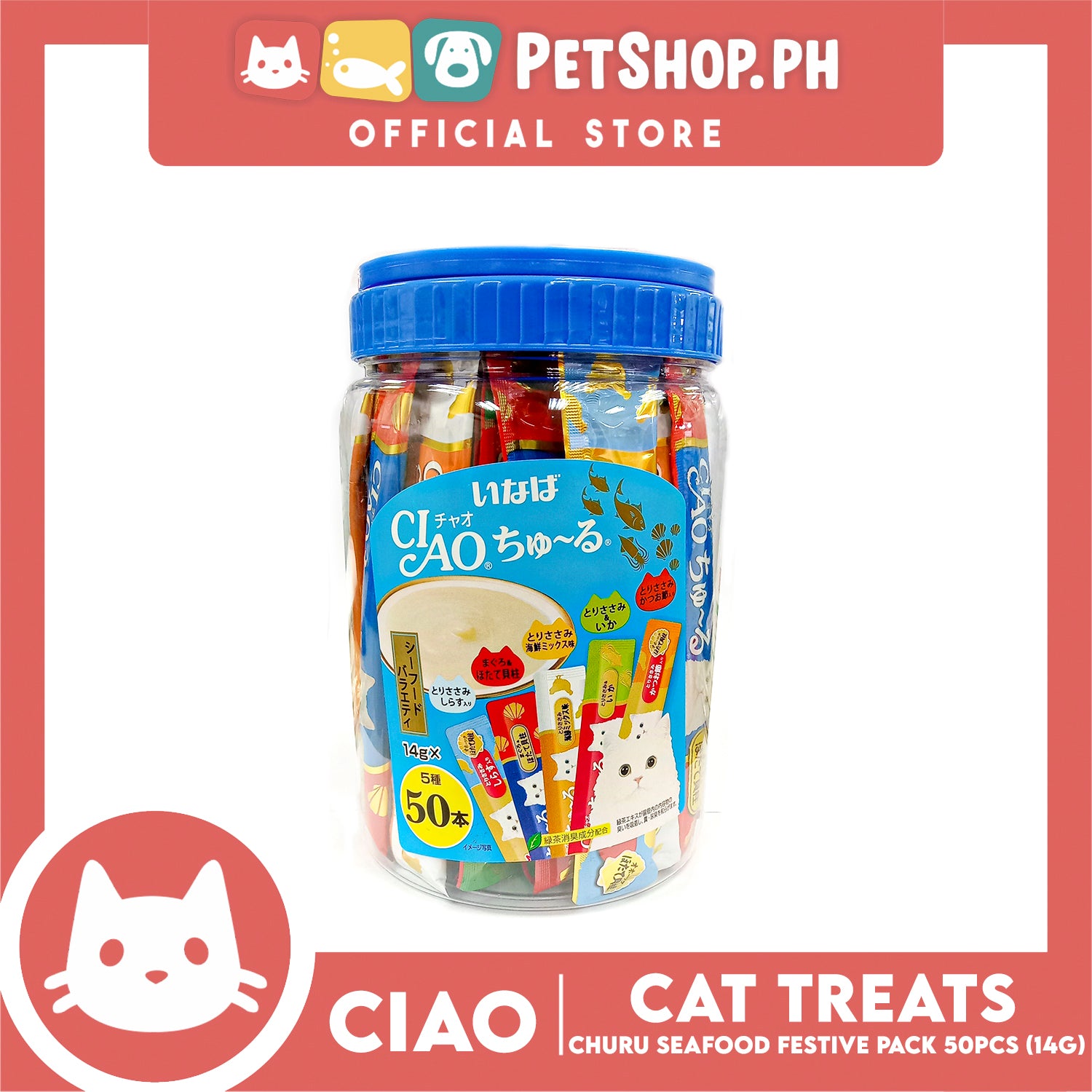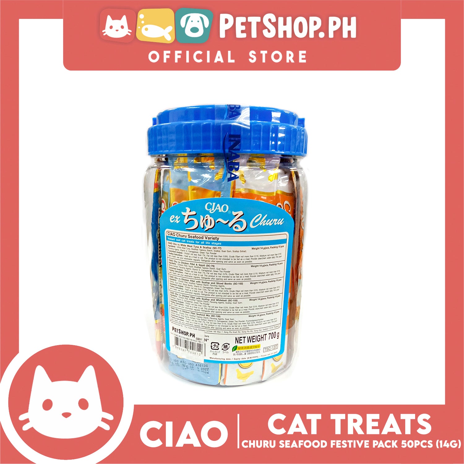 Ciao Churu Seafood Festive Pack Jar Variety Flavors, Cat Treats (TSC-13T) 14g x 50pcs