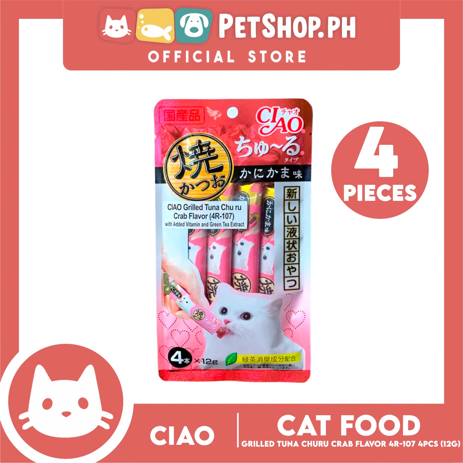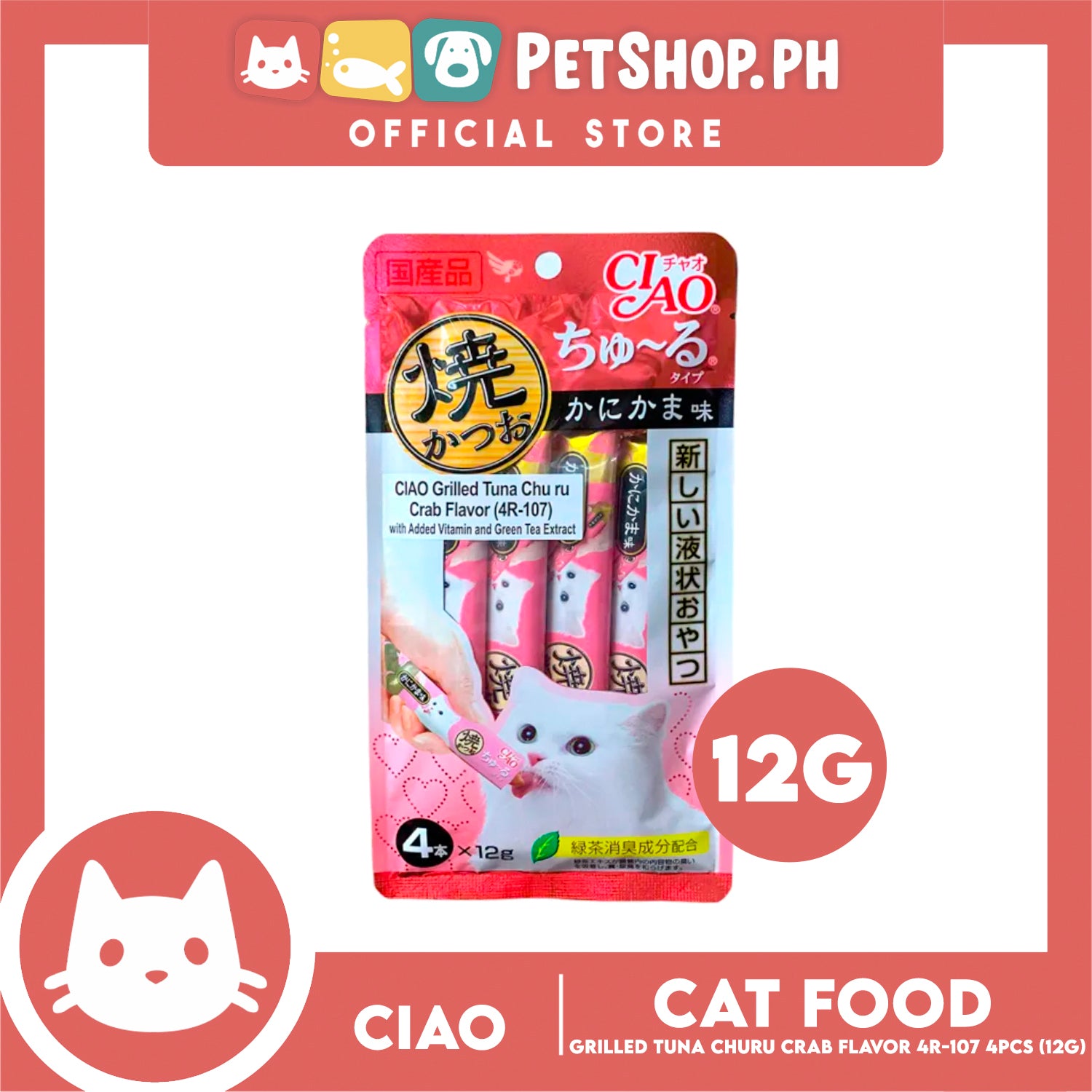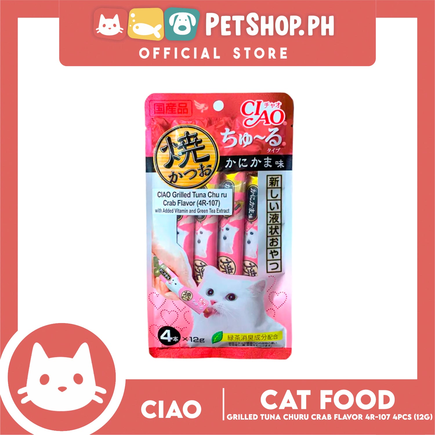 Ciao Grilled Tuna Churu Crab Flavor (4R-107) with Added Vitamin and Green Tea Extract Cat Wet Treats 12g x 4pcs