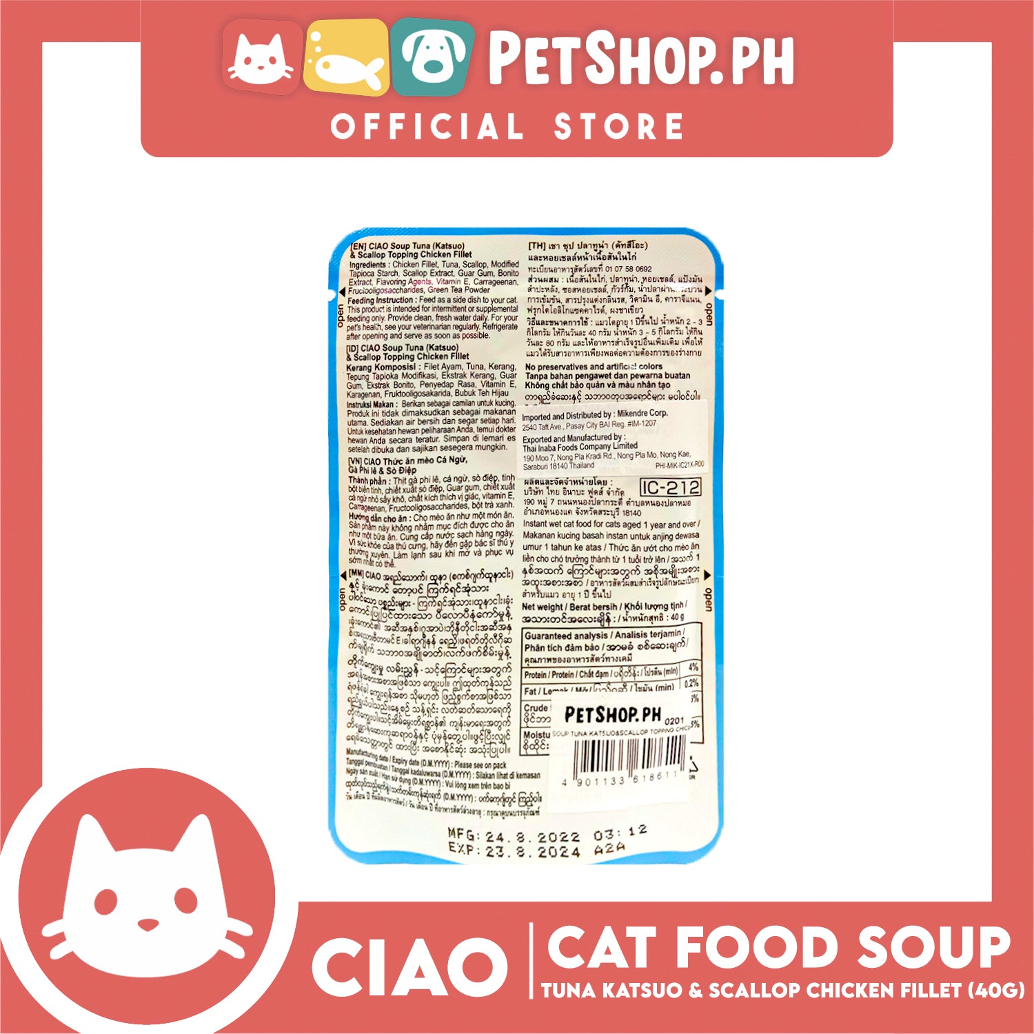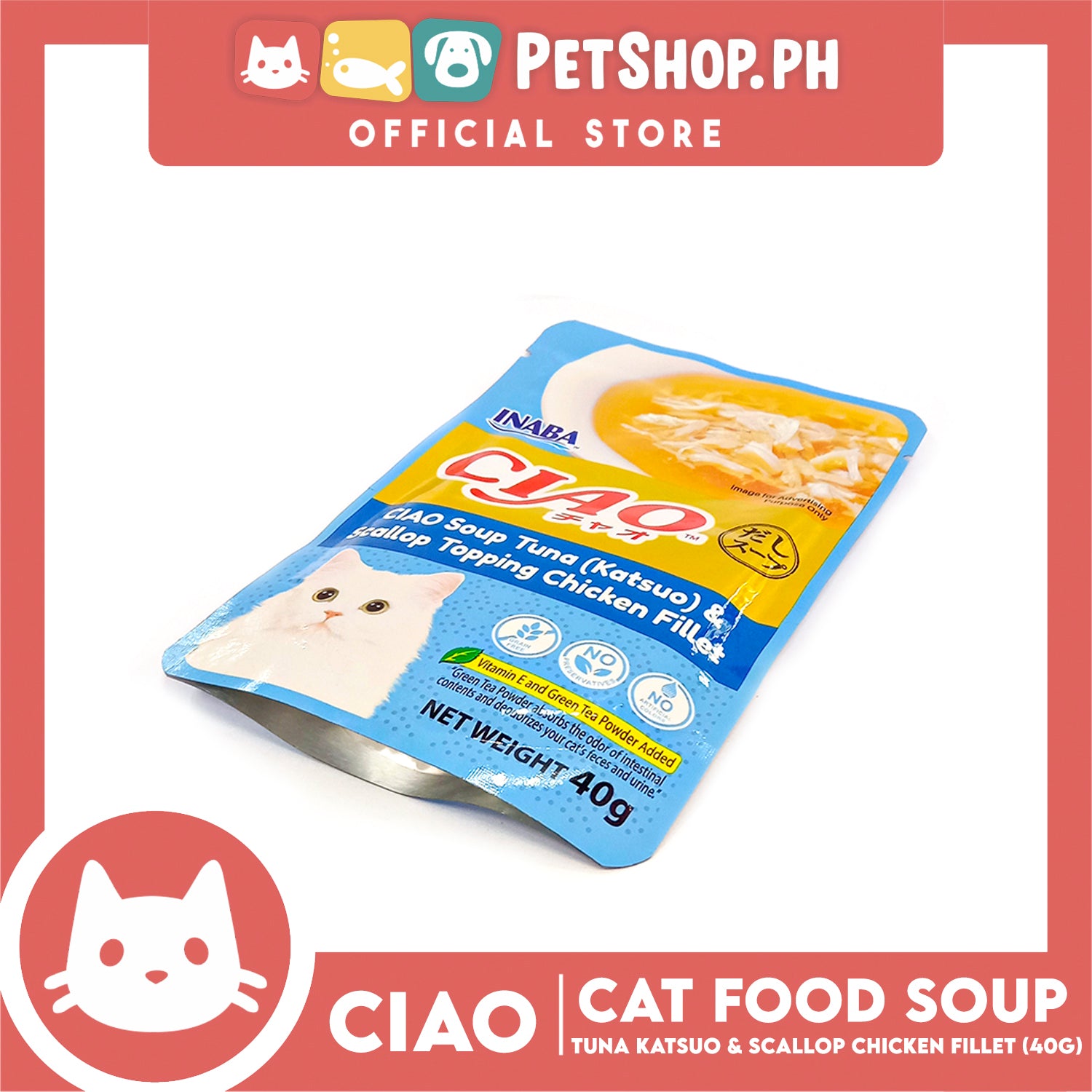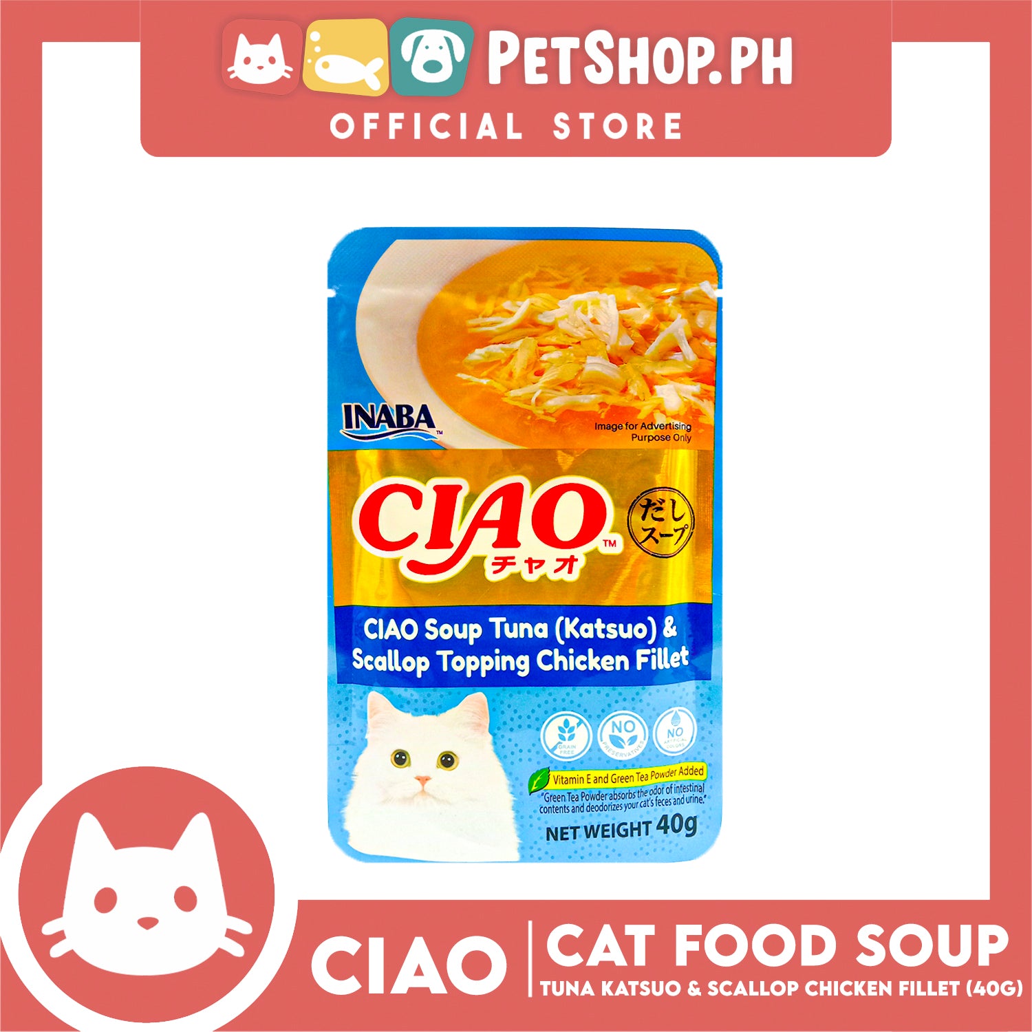 Ciao Soup Tuna Katsuo And Scallop Topping Chicken Fillet Flavor 40g (IC-212) Cat Wet Food