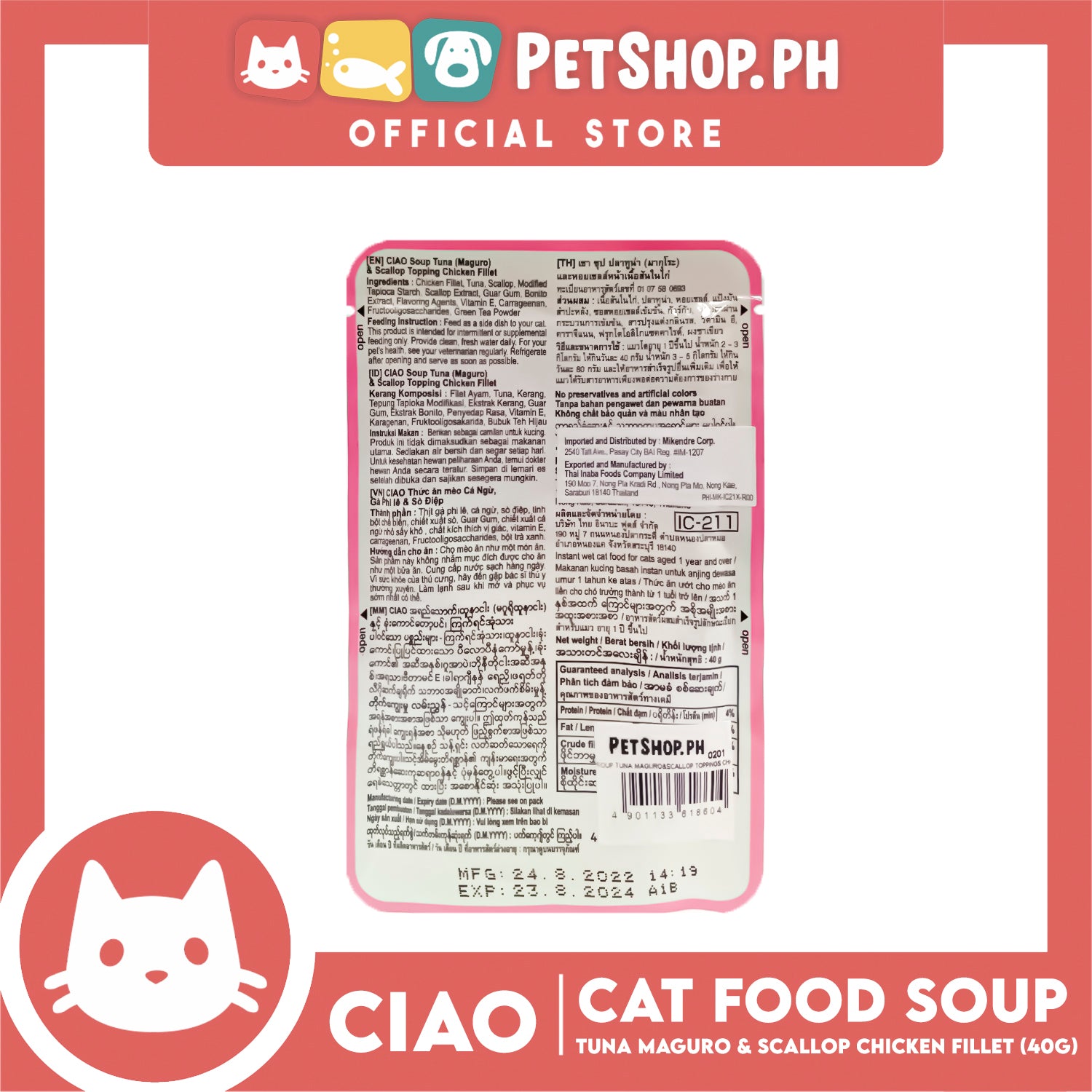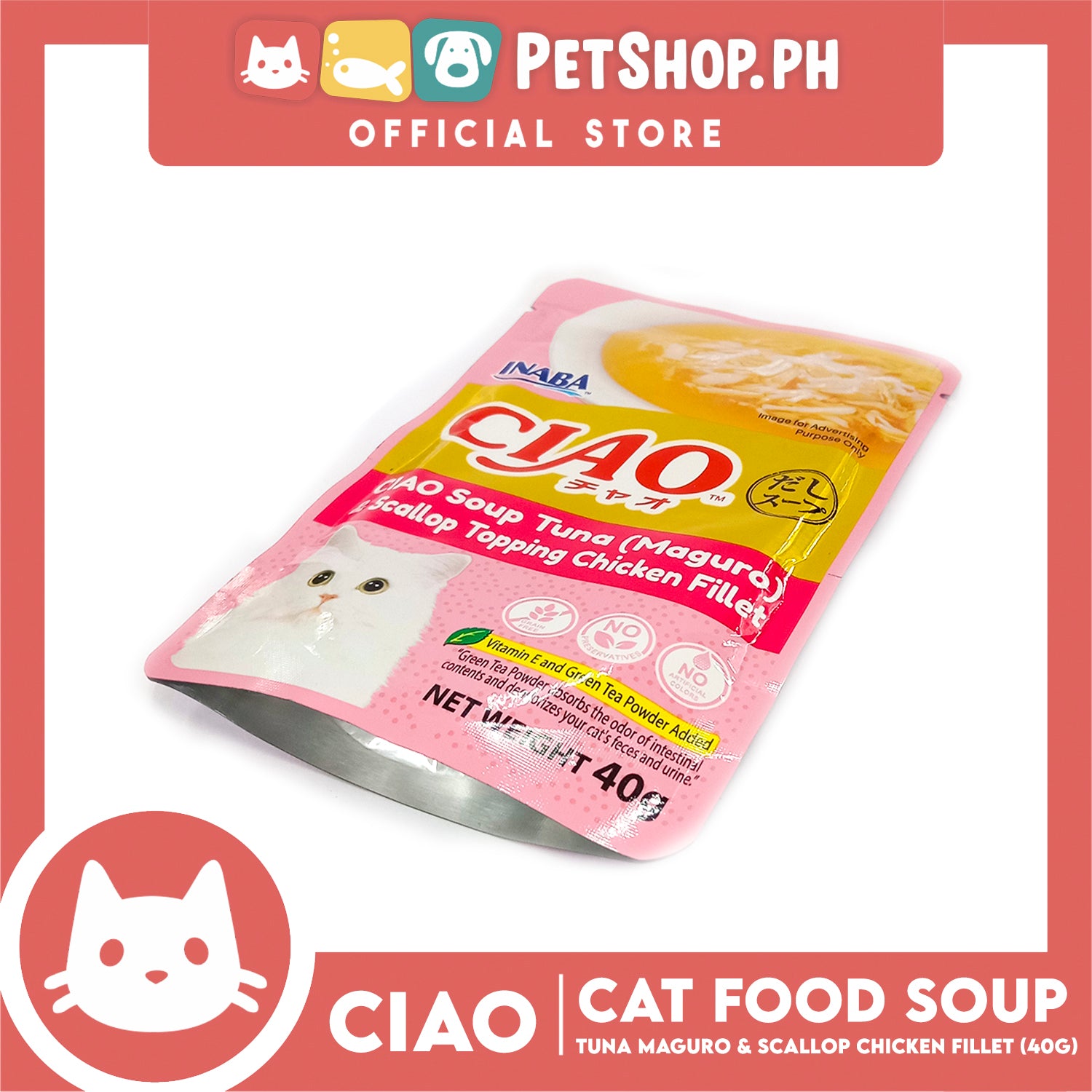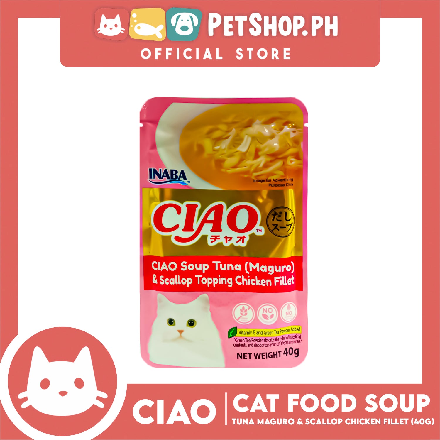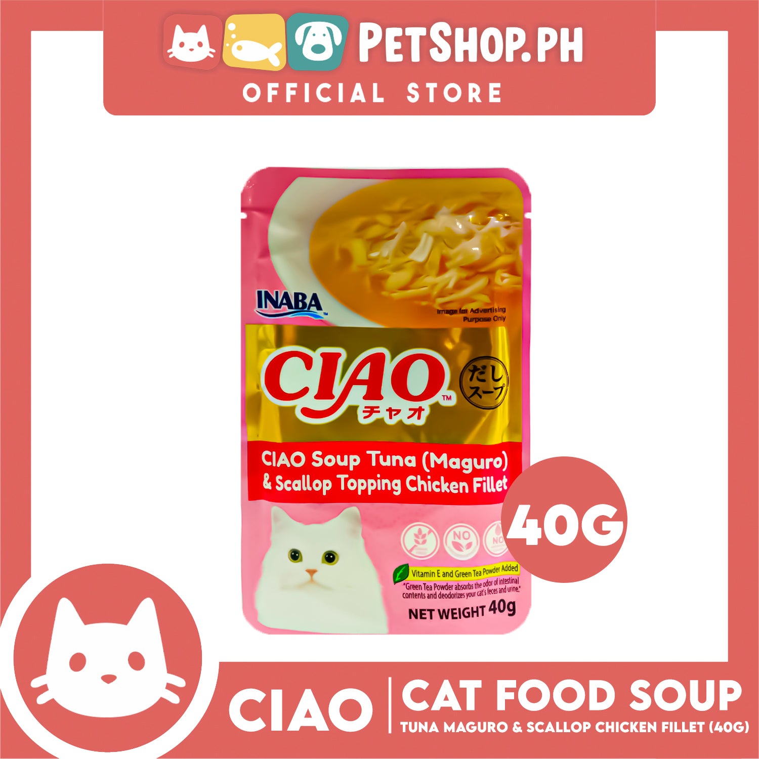 Ciao Soup Tuna (Maguro) And Scallop Topping Chicken Fillet Flavor 40g (IC-211) Cat Wet Food