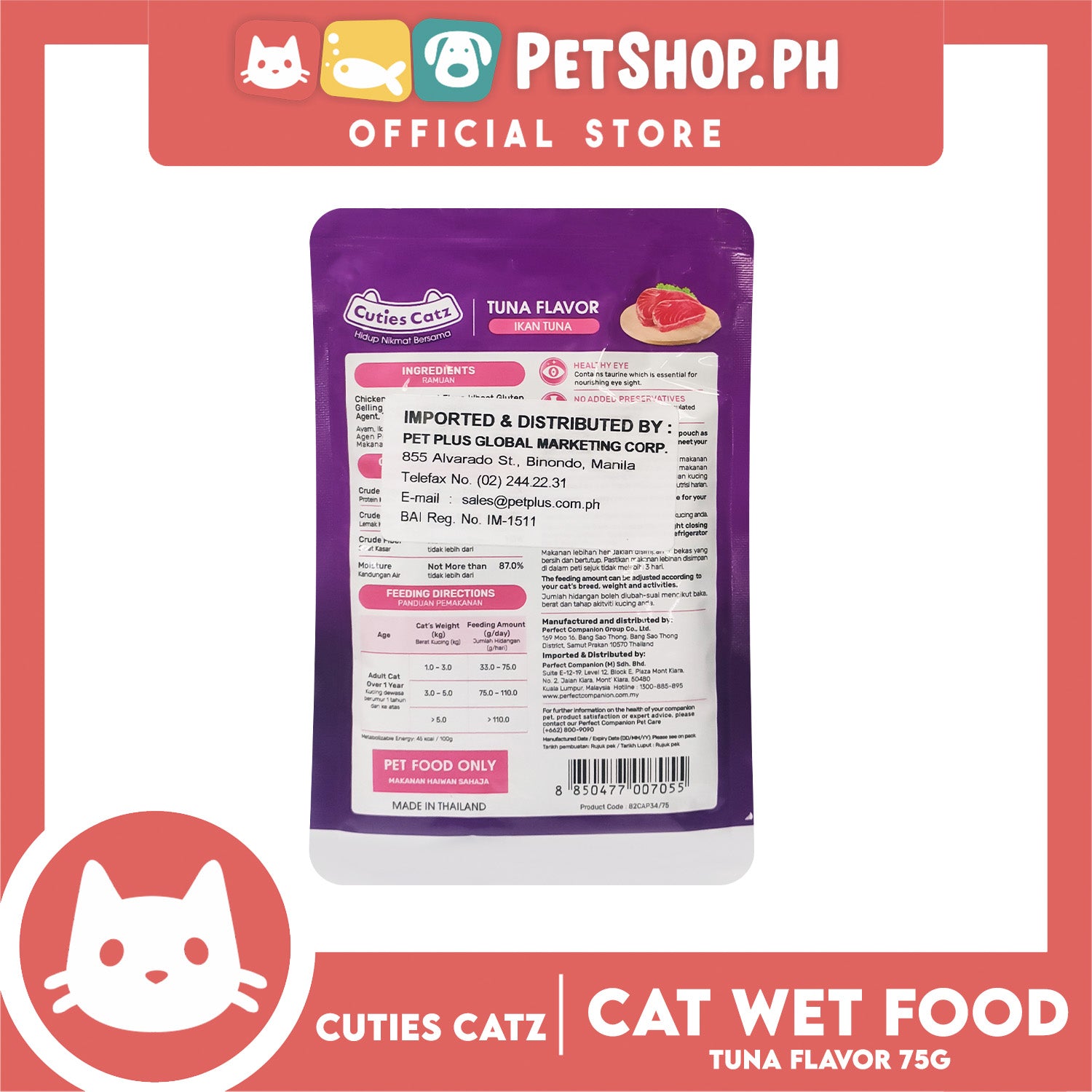 - Thank you and happy shopping!Cuties Catz Tuna Flavor Cat Wet Food for Adult Cat 75g