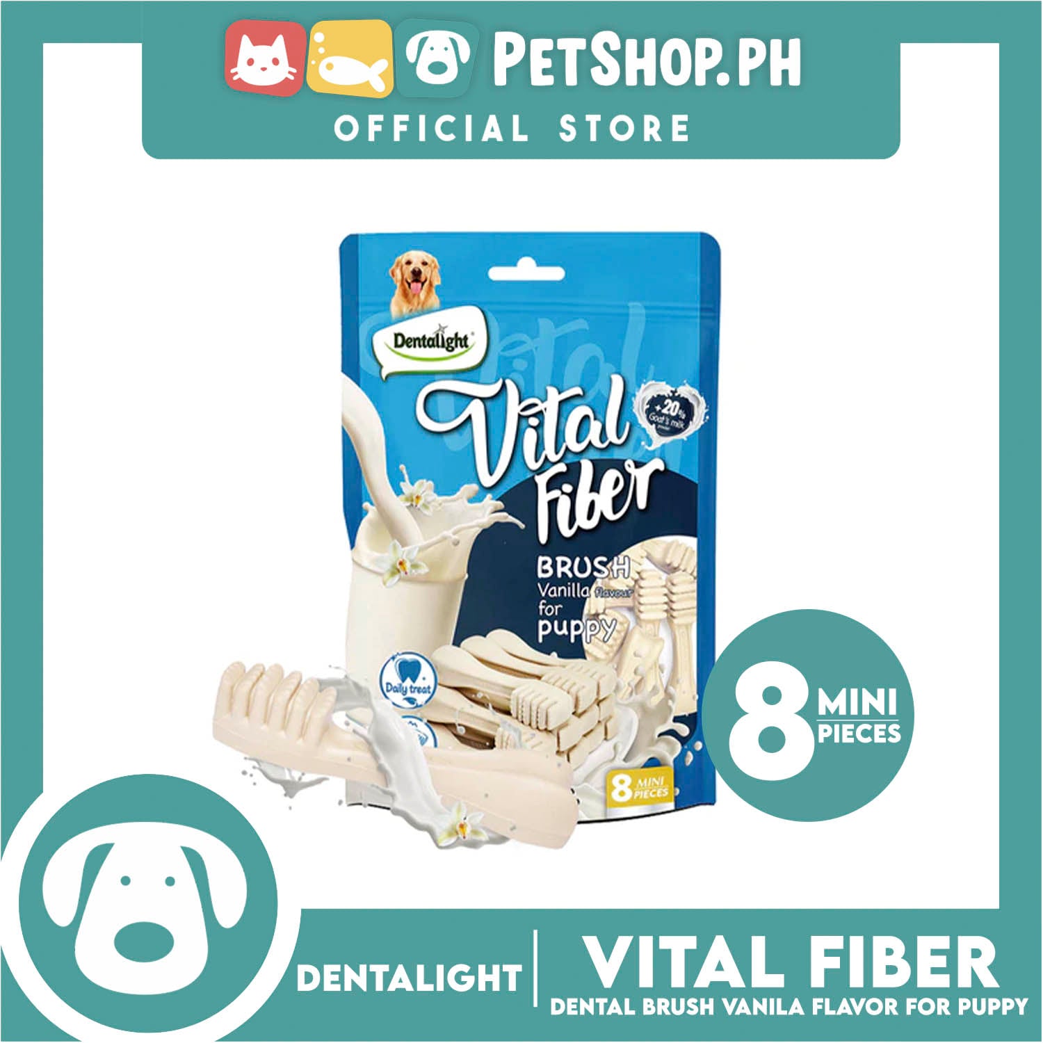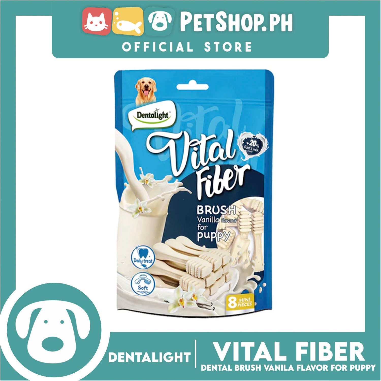 Dentalight Vital Fiber Puppy Soft Dental Brush Vanilla Dog Treats for Puppy 8pcs/pack