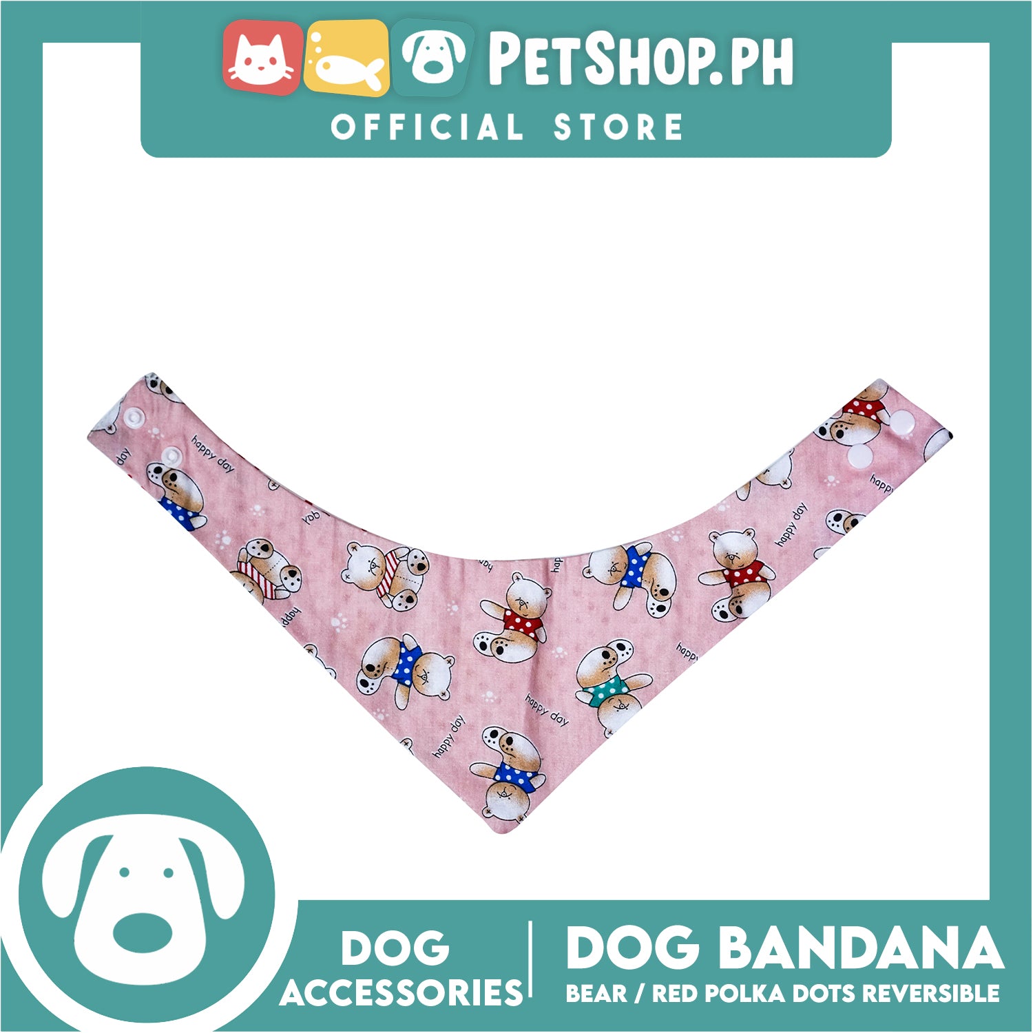 Dog Bandana Bear with Red Polka Dots Design Reversible (Extra Large) Washable Scarf