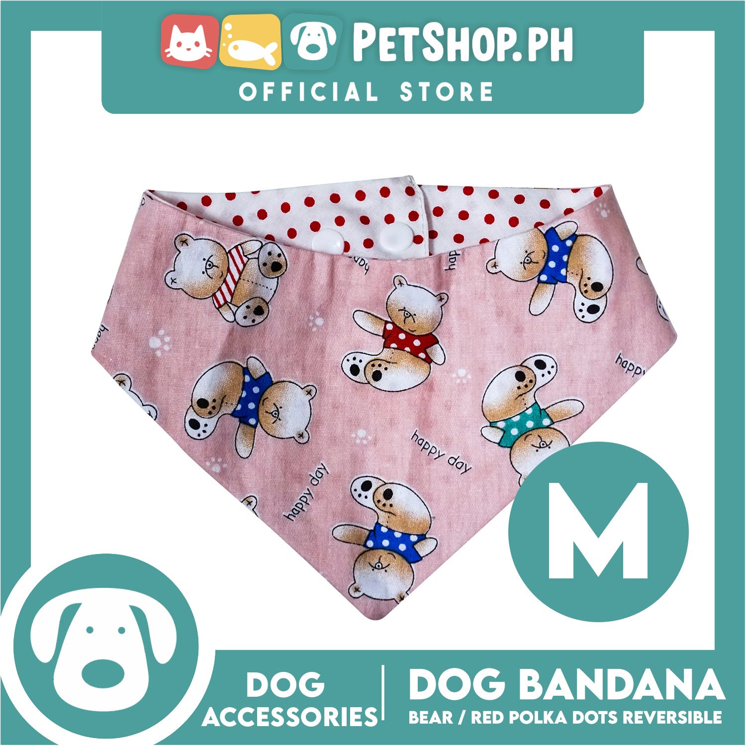 Dog Bandana Bear with Red Polka Dots Design Reversible (Medium) Washable Scarf