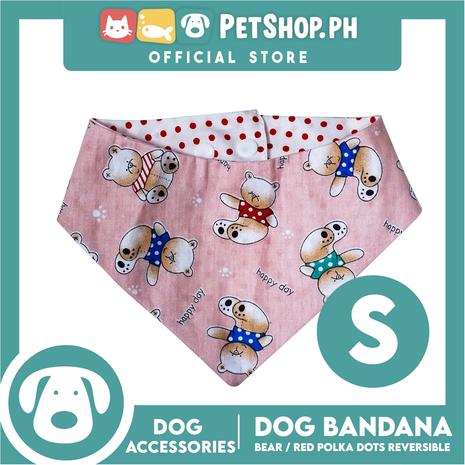 Dog Bandana Bear with Red Polka Dots Design Reversible (Small) Washable Scarf