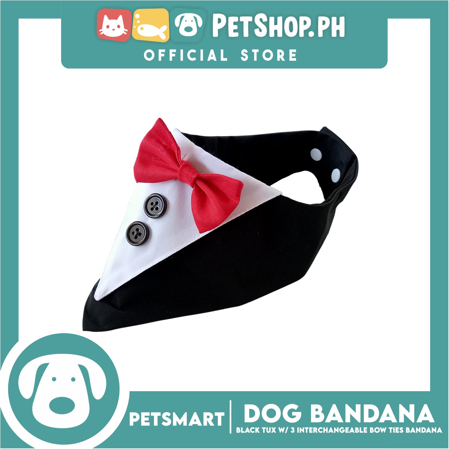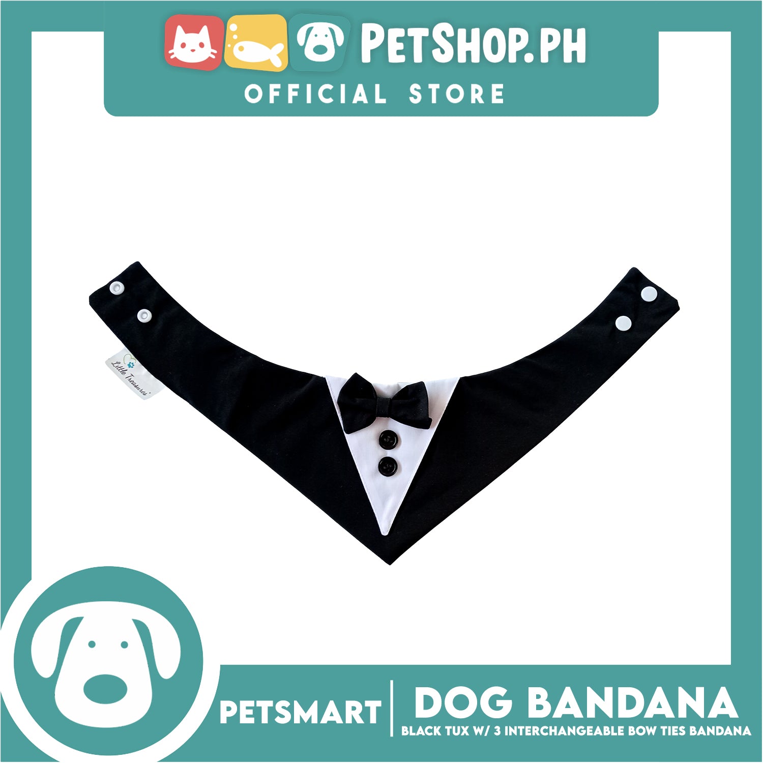Dog Bandana, Black Tuxedo with 3 Interchangeable Bow Ties DB-CTN45S (Small) Soft and Comfortable Pet Bandana