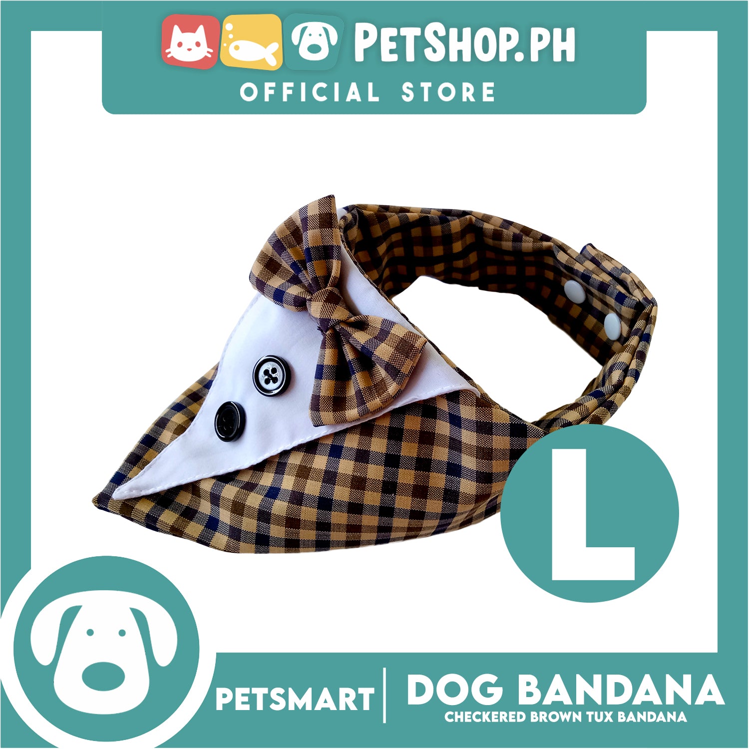 Dog Bandana, Checkered Brown Tuxedo Design Bandana DB-CTN44L (Large) Soft and Comfortable Pet Bandana