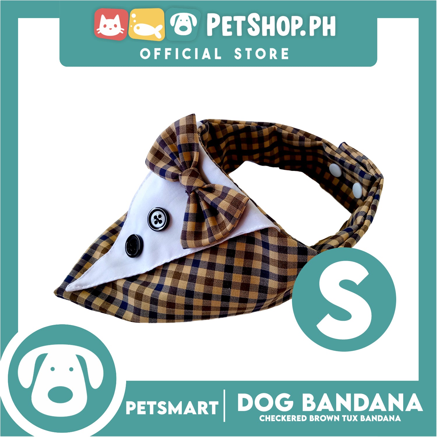 Dog Bandana, Checkered Brown Tuxedo Design Bandana DB-CTN44S (Small) Soft and Comfortable Pet Bandana
