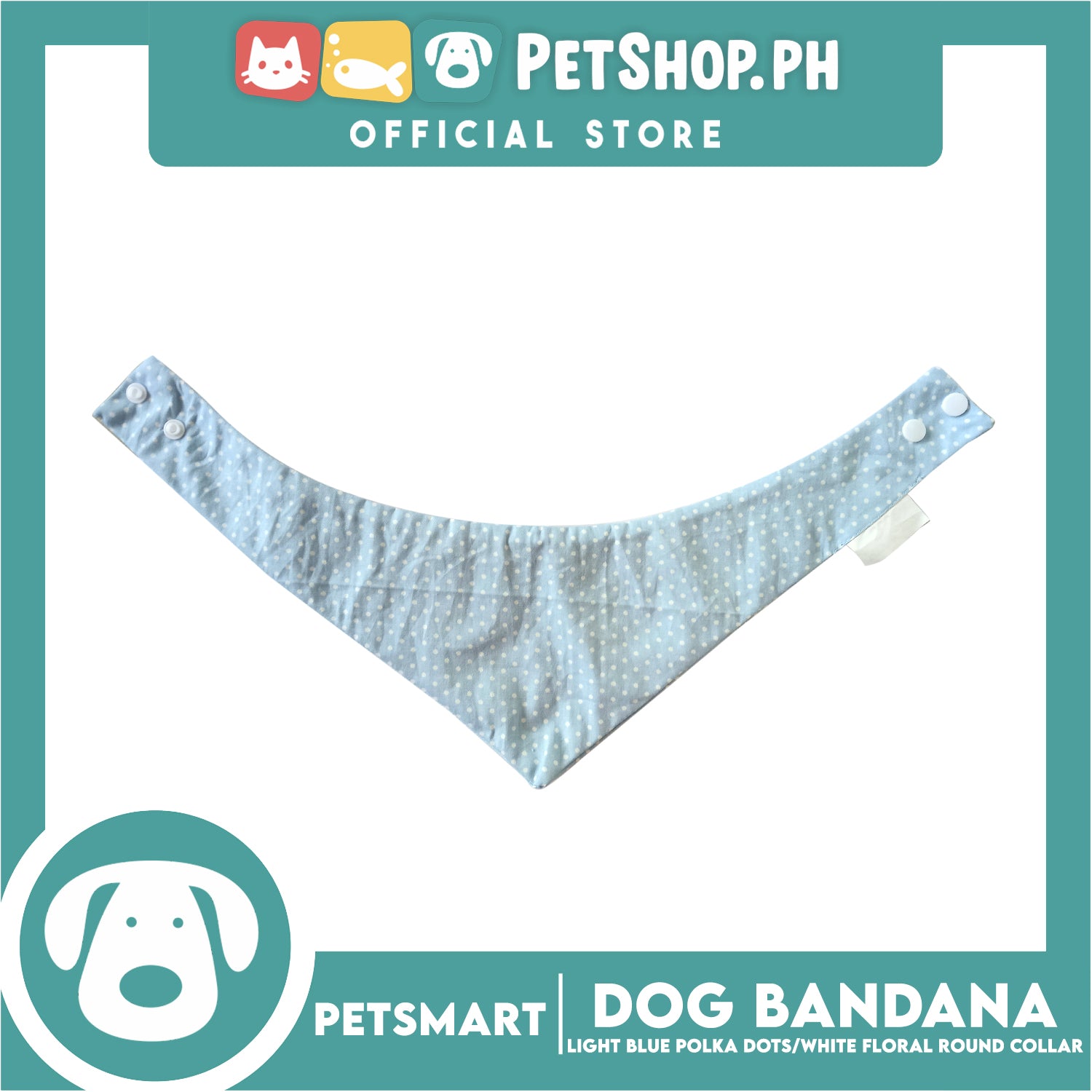 Dog Bandana, Light Blue Polka Dots with White Floral Round Collar Design DB-CTN43S (Small) Soft and Comfortable Pet Bandana