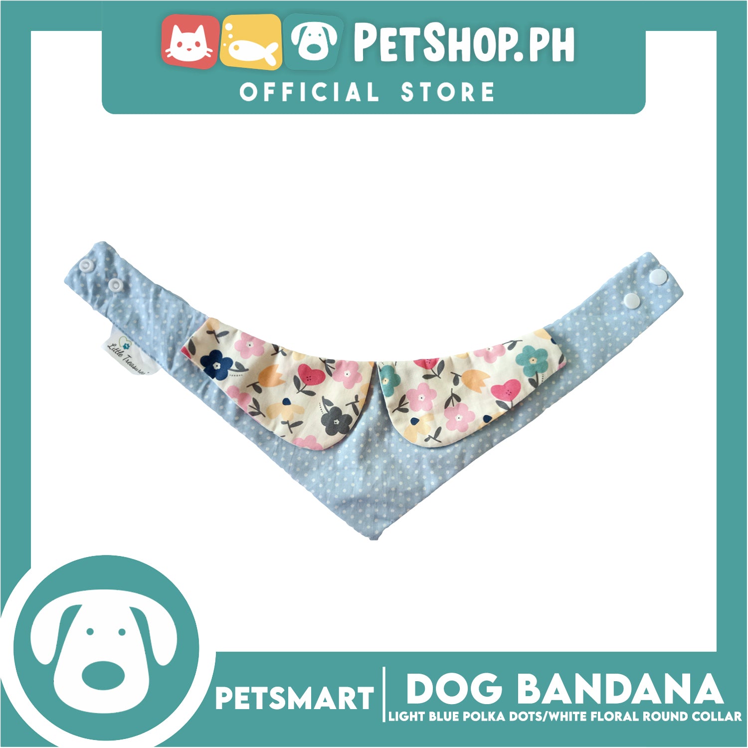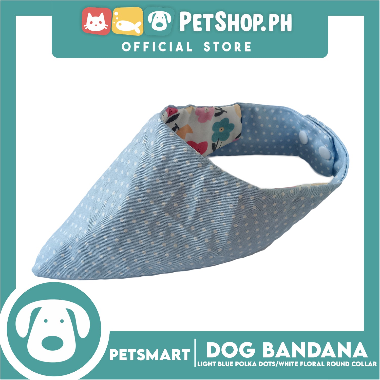 Dog Bandana, Light Blue Polka Dots with White Floral Round Collar Design DB-CTN43XS (XS) Soft and Comfortable Pet Bandana