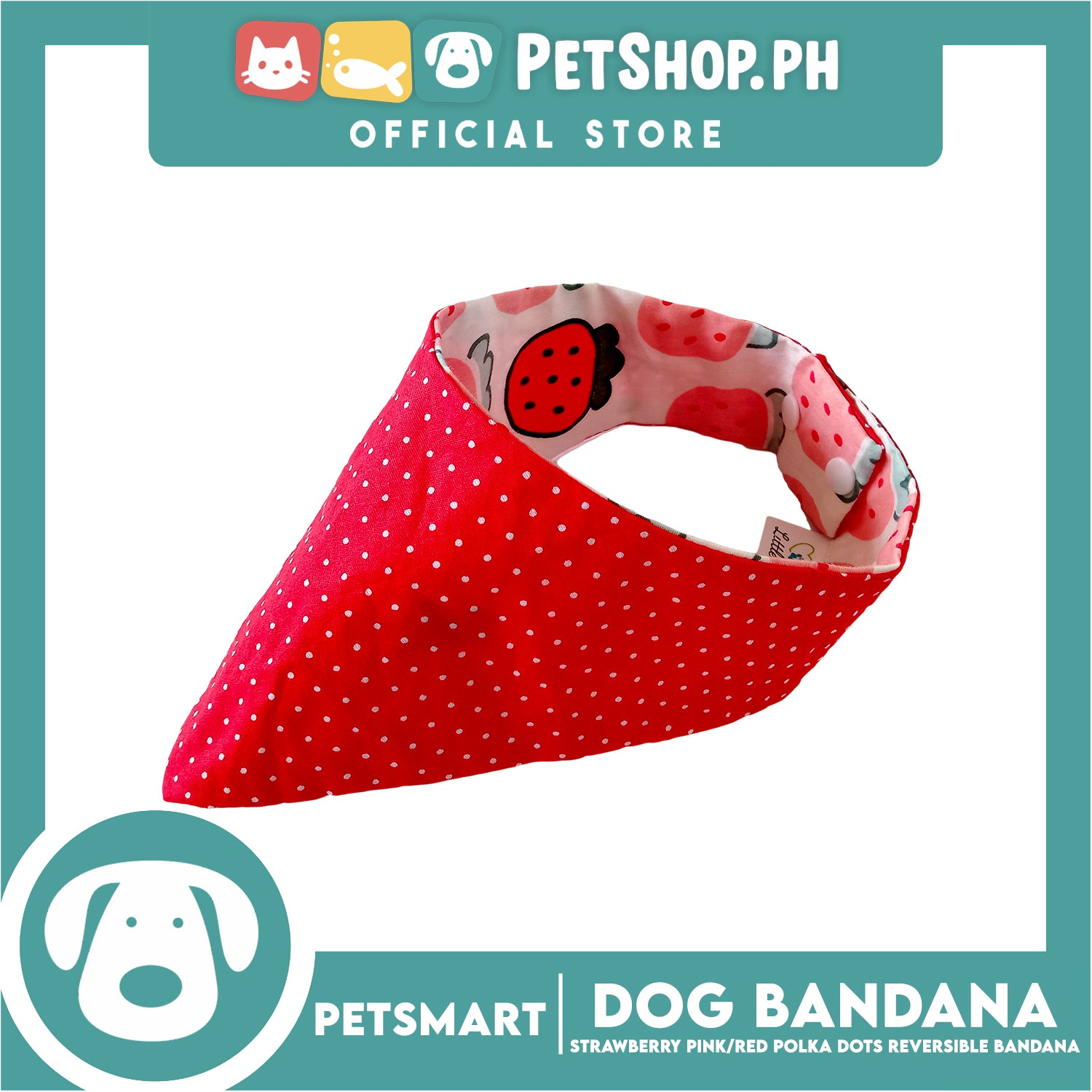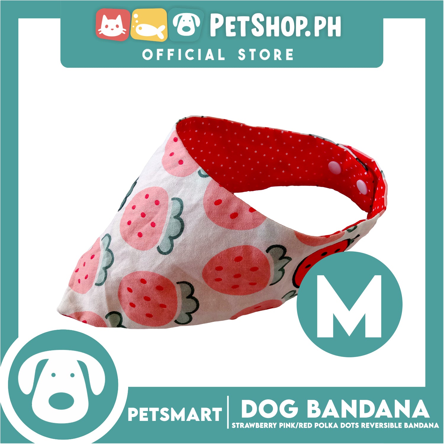 Dog Bandana, Strawberry Design, Pink with Red Polka Dots Reversible Bandana DB-CTN41M (Medium) Soft and Comfortable Pet Bandana