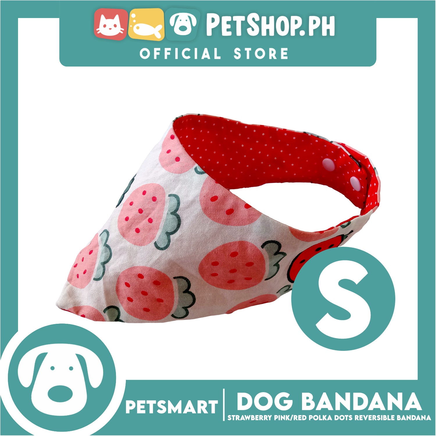 Dog Bandana, Strawberry Design, Pink with Red Polka Dots Reversible Bandana DB-CTN41S (Small) Soft and Comfortable Pet Bandana
