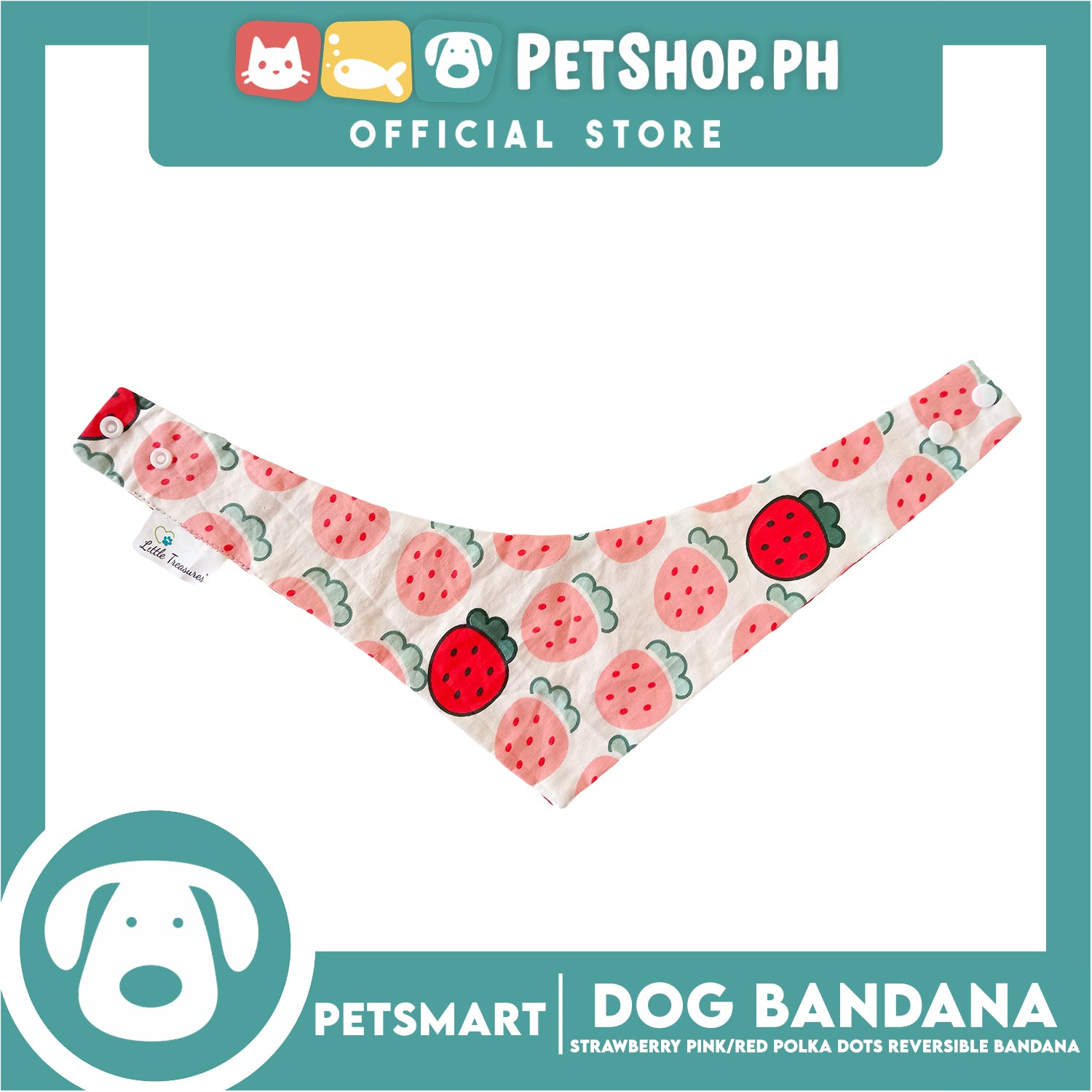 Dog Bandana, Strawberry Design, Pink with Red Polka Dots Reversible Bandana DB-CTN41XL (XL) Soft and Comfortable Pet Bandana