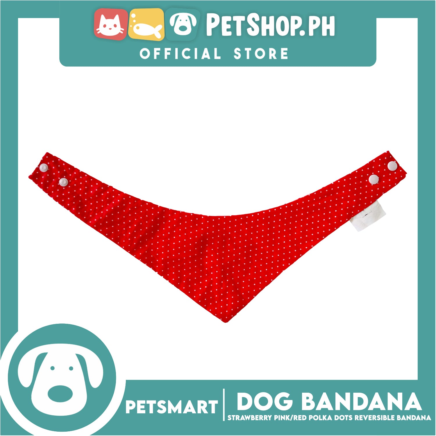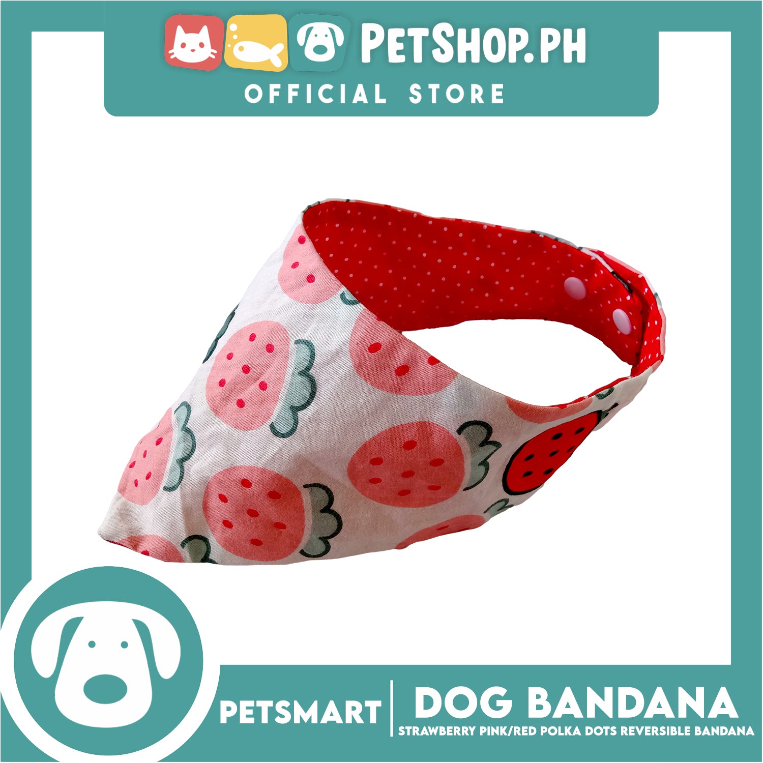 Dog Bandana, Strawberry Design, Pink with Red Polka Dots Reversible Bandana DB-CTN41XS (XS) Soft and Comfortable Pet Bandana