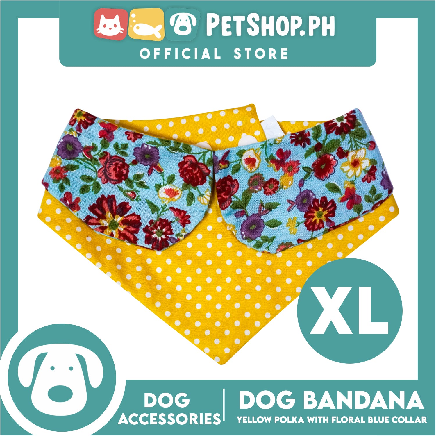 Dog Bandana Yellow Polka with Floral Blue Collar Design (Extra Large) Washable Scarf