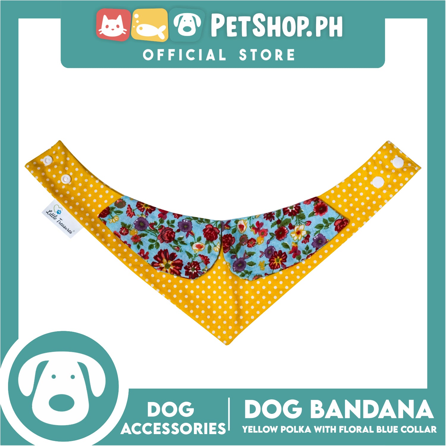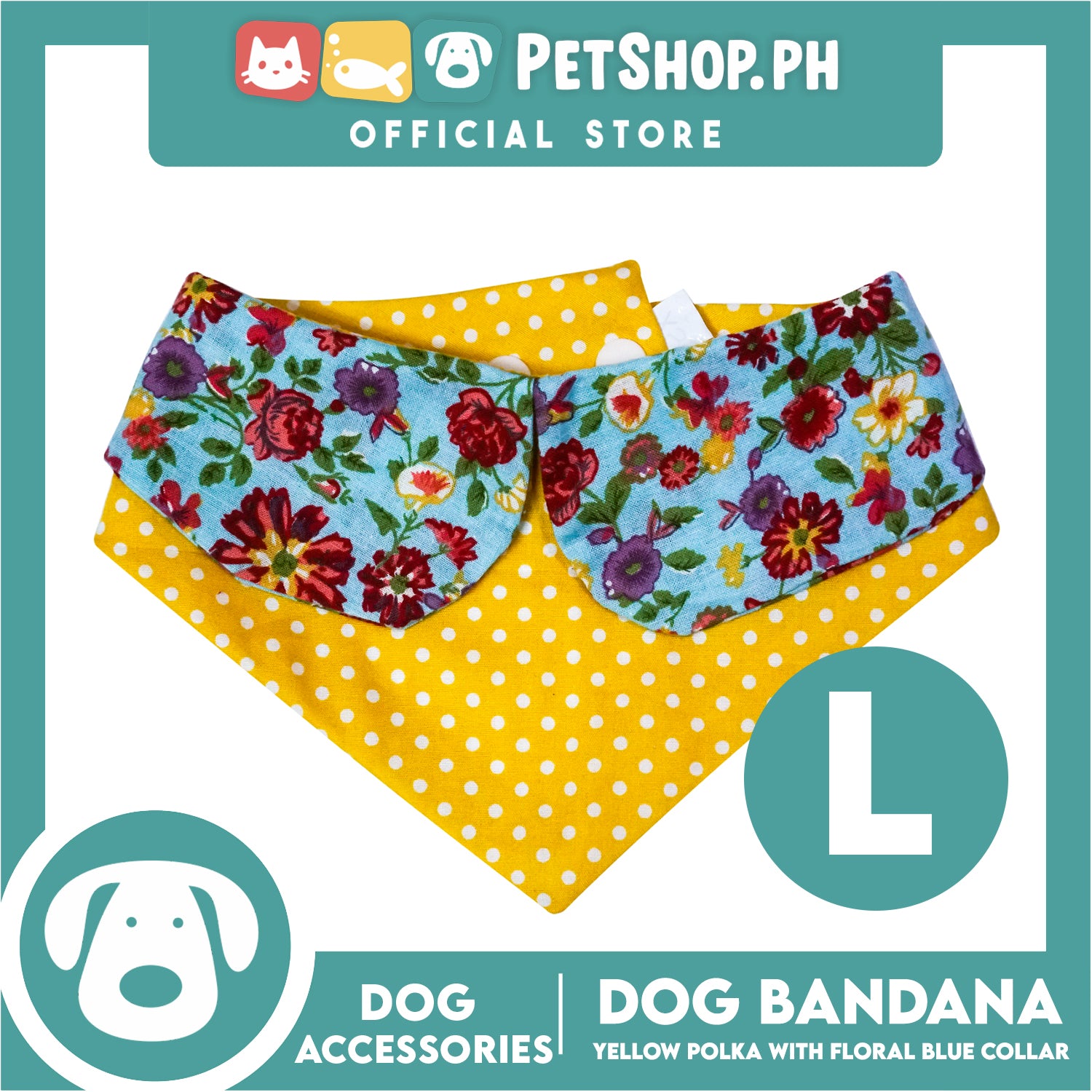 Dog Bandana Yellow Polka with Floral Blue Collar Design (Large) Washable Scarf