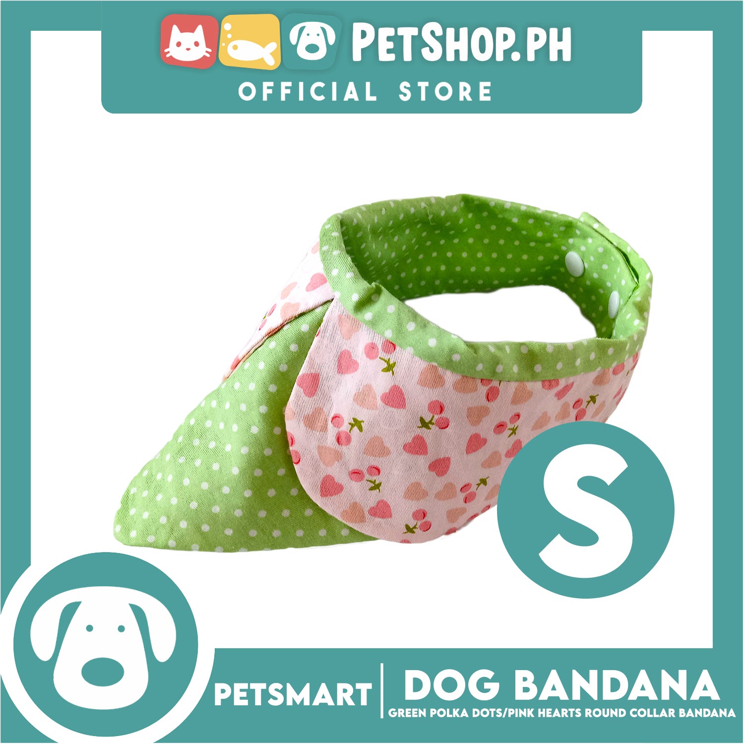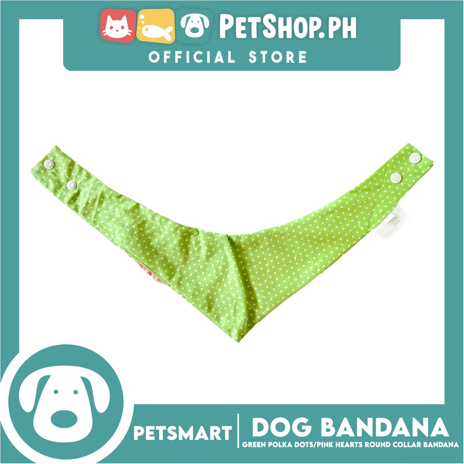 Dog Collar Bandana, Green Polka Dots with Pink Heart Round Collar Bandana DB-CTN42S (Small) Soft and Comfortable Pet Bandana