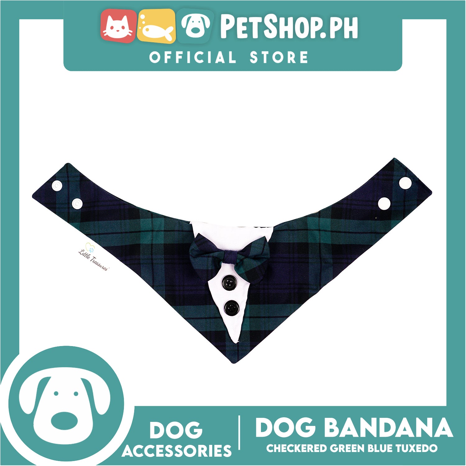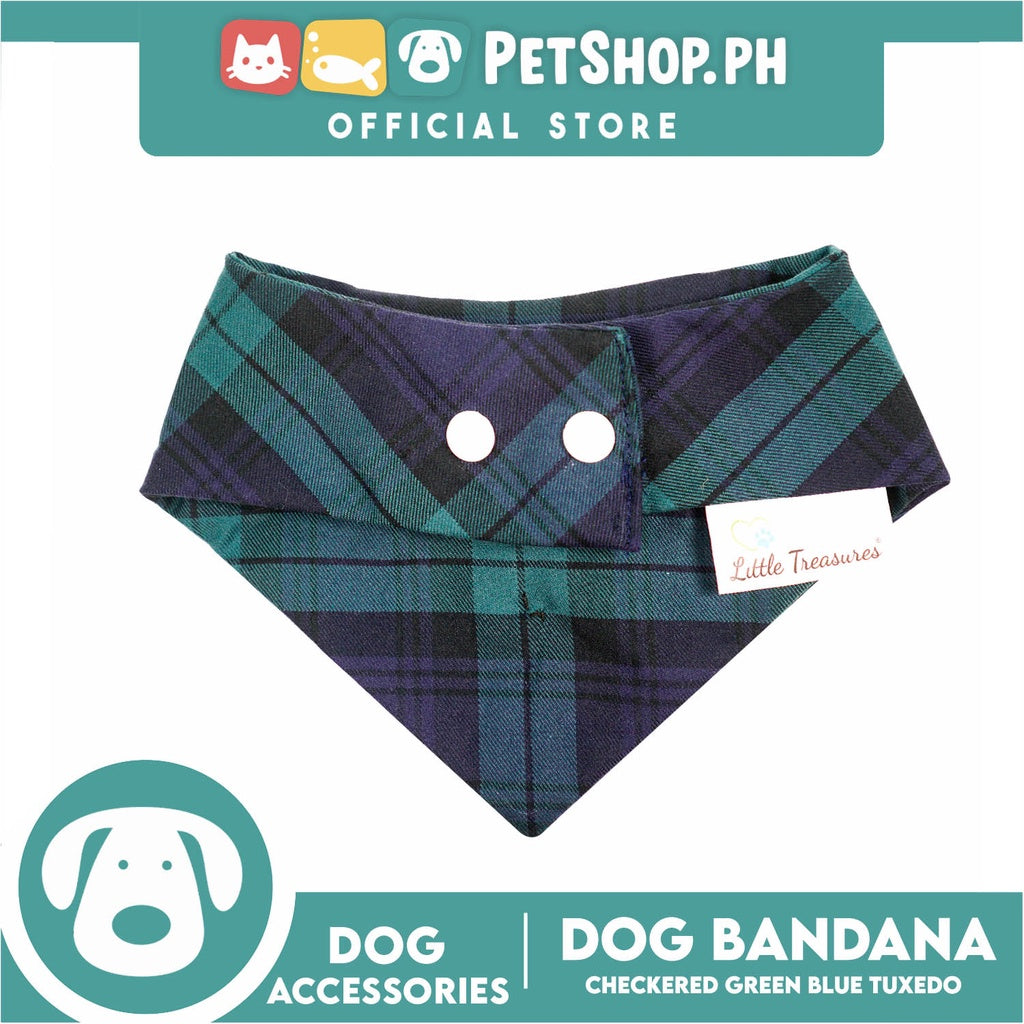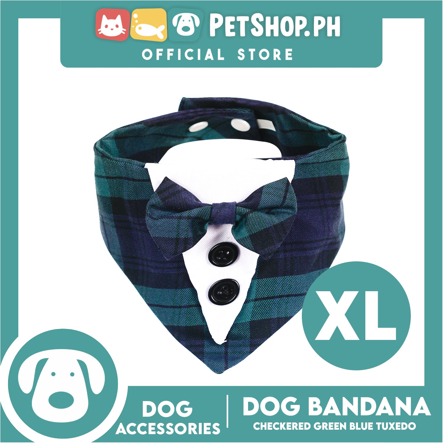 Dog Pet Bandana Blue and Green Checkered Tuxedo Design Washable Scarf (Extra Large)