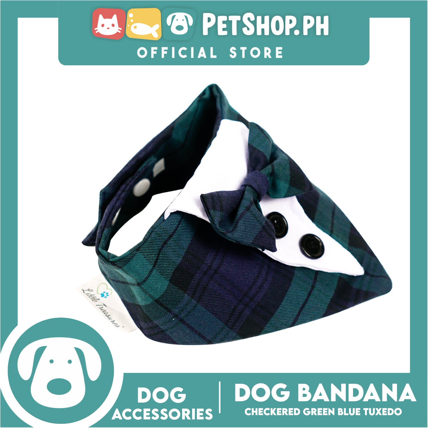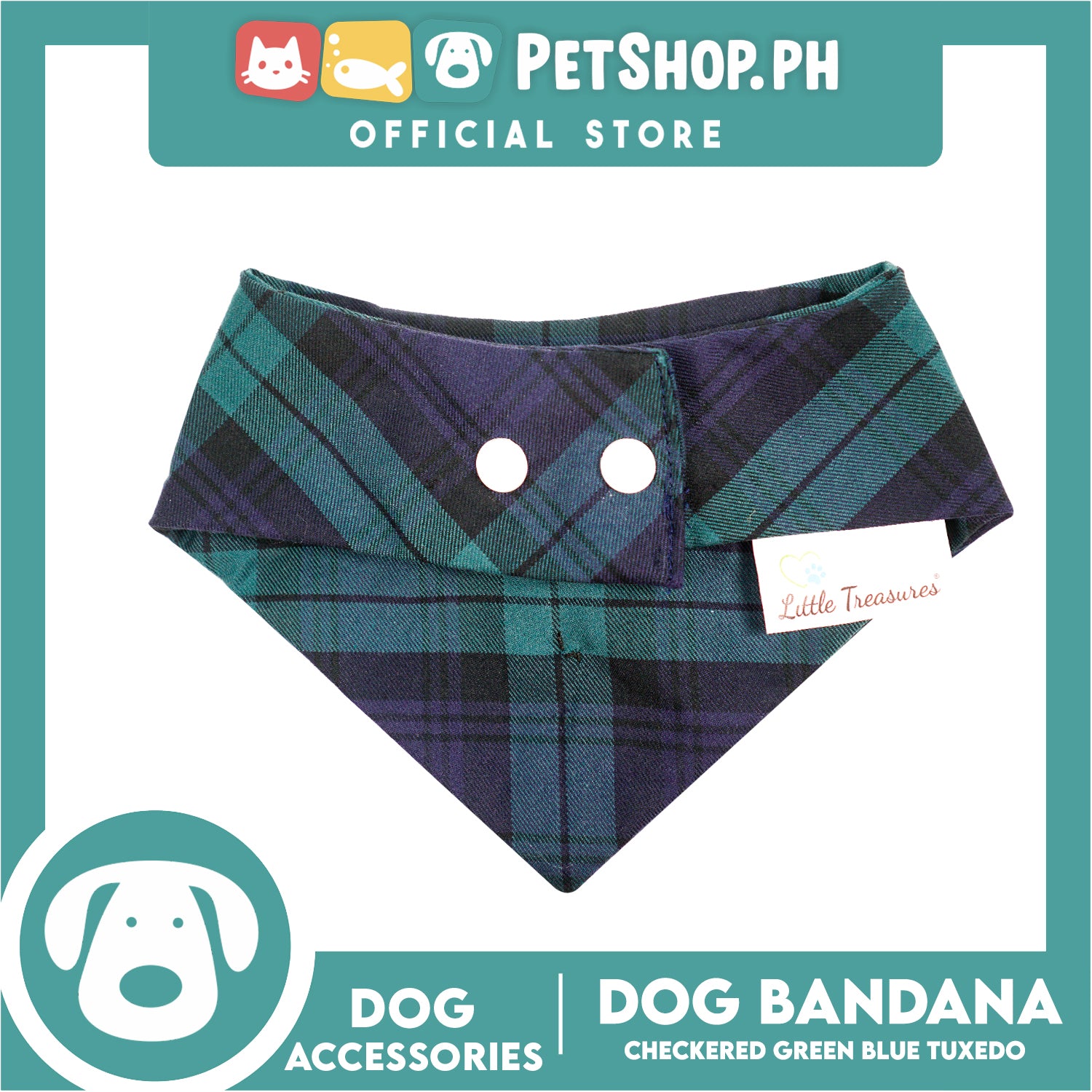 Dog Pet Bandana Blue and Green Checkered Tuxedo Design Washable Scarf (Large)
