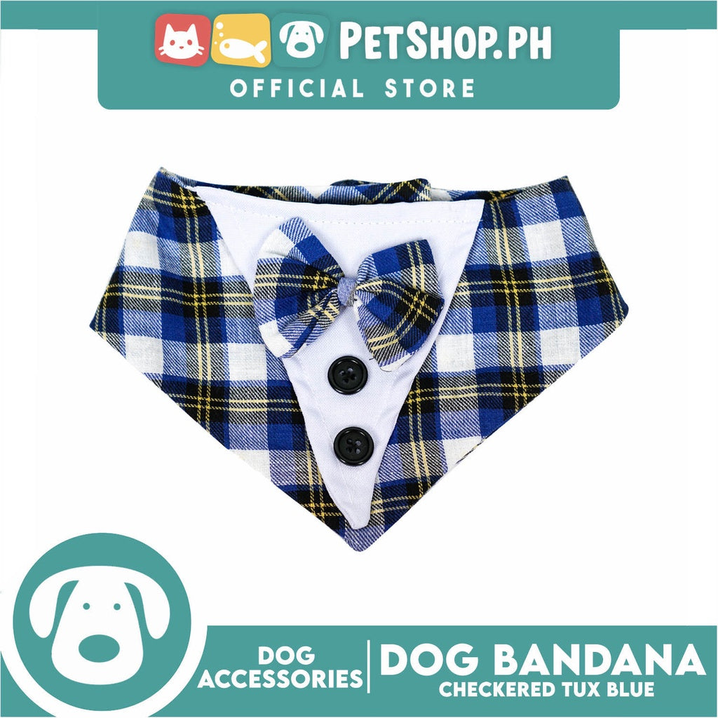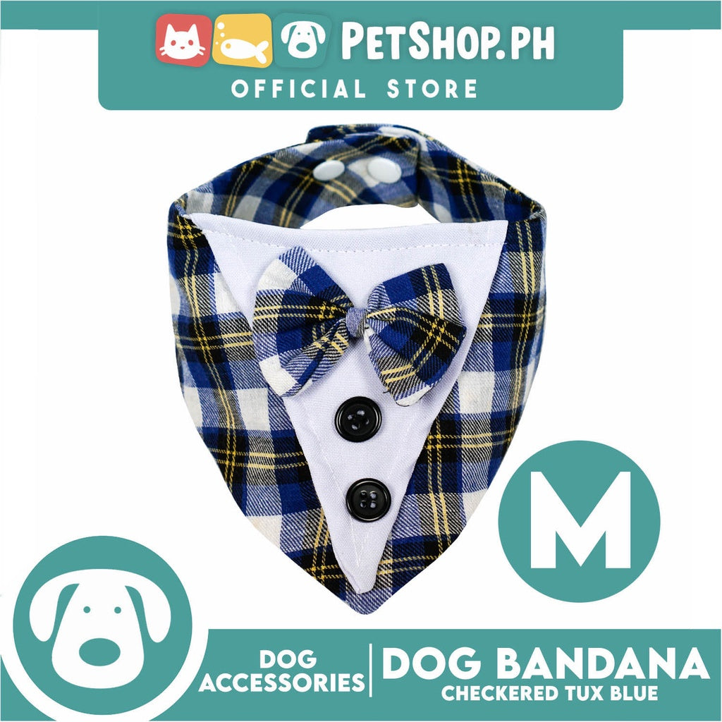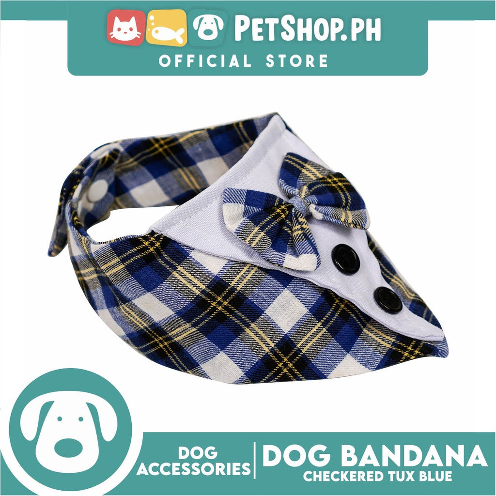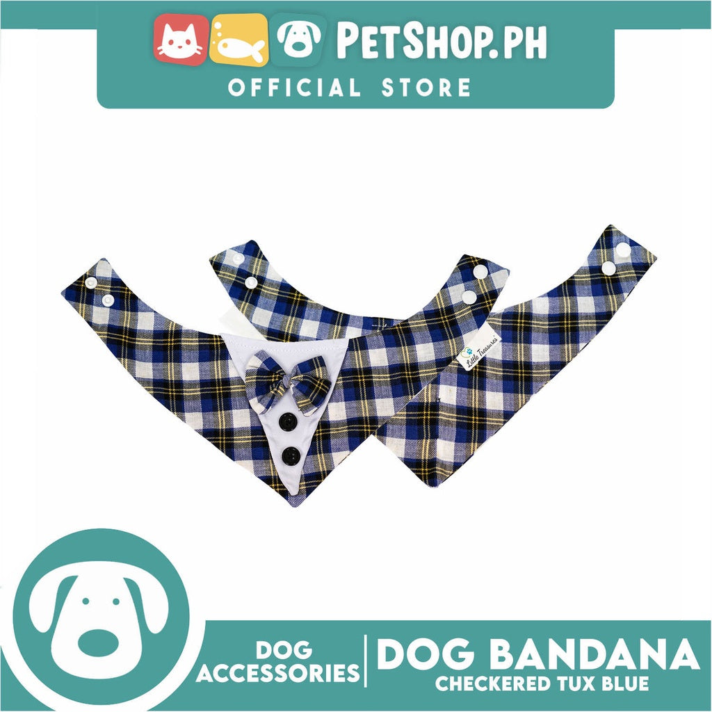 Dog Pet Bandana Blue Checkered Tuxedo Design Washable Scarf (Medium)