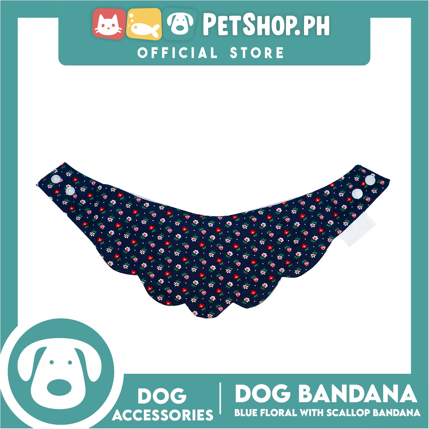 Dog Pet Bandana Blue Floral Scallop Design Washable Scarf (Extra Large)