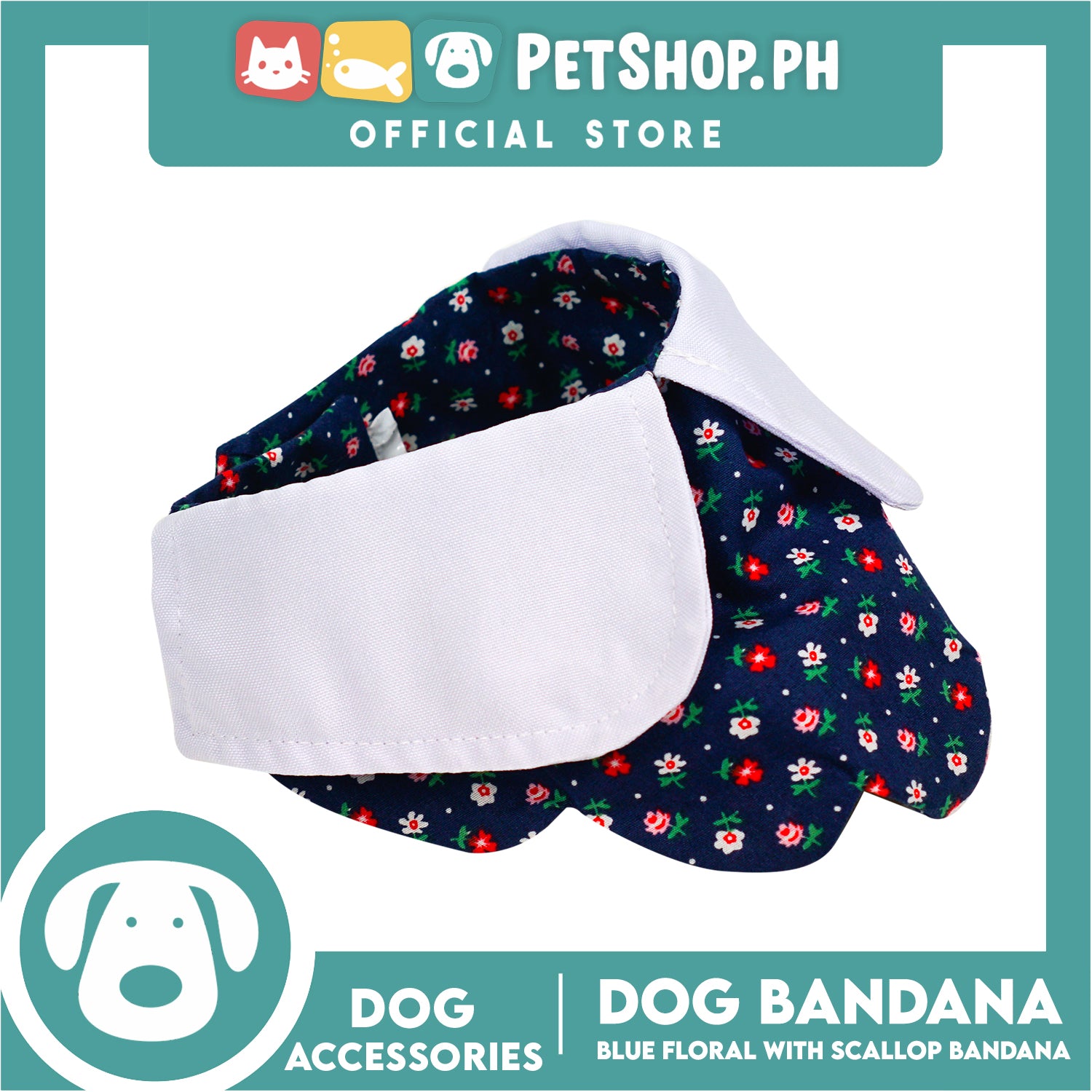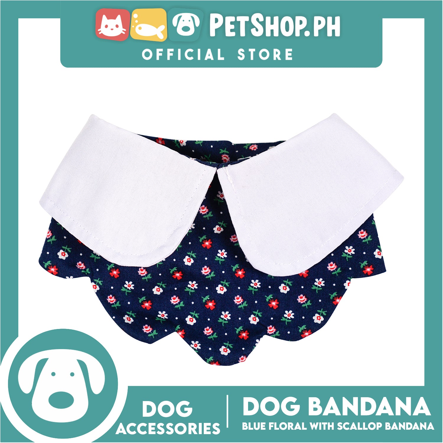 Dog Pet Bandana Blue Floral Scallop Design Washable Scarf (Extra Small)