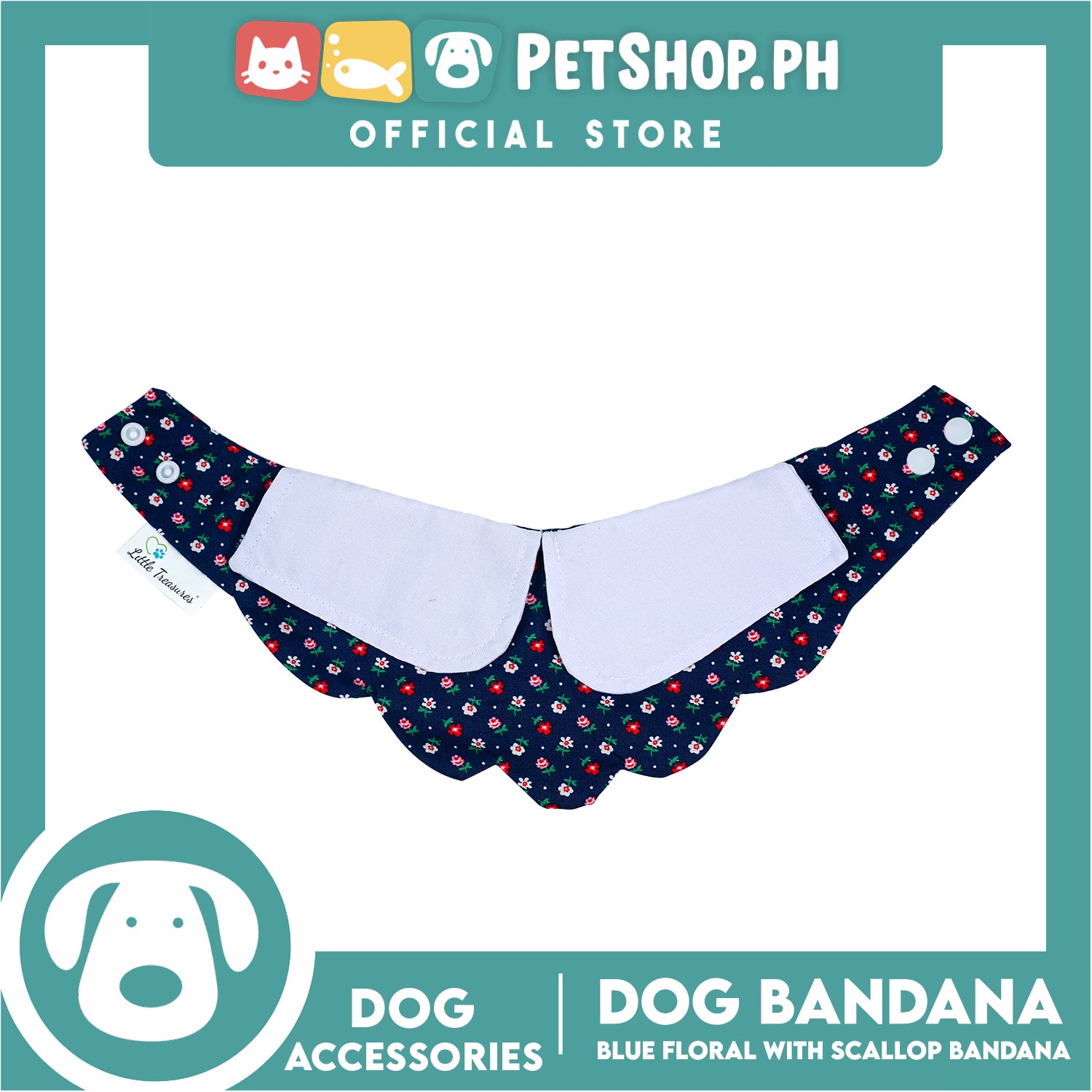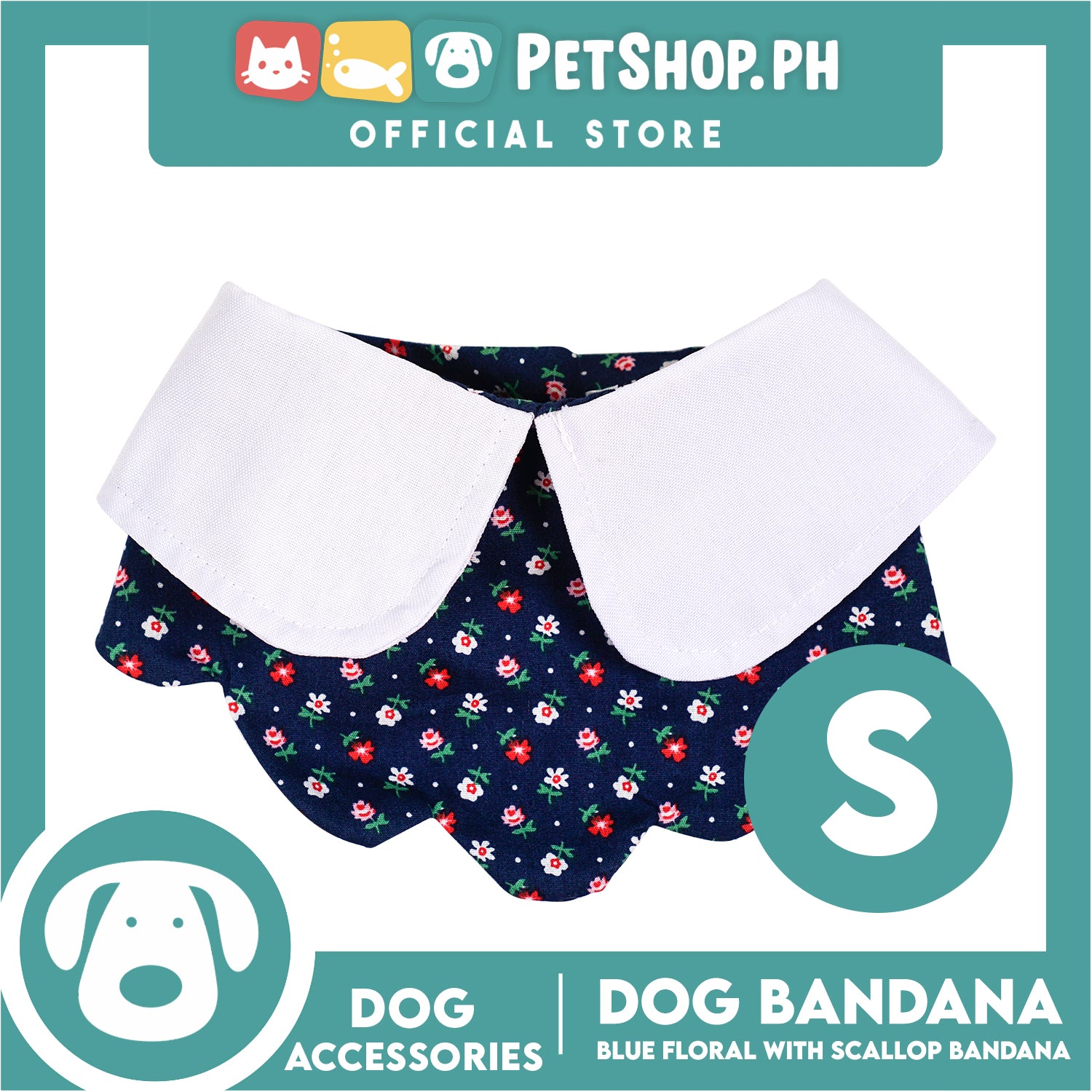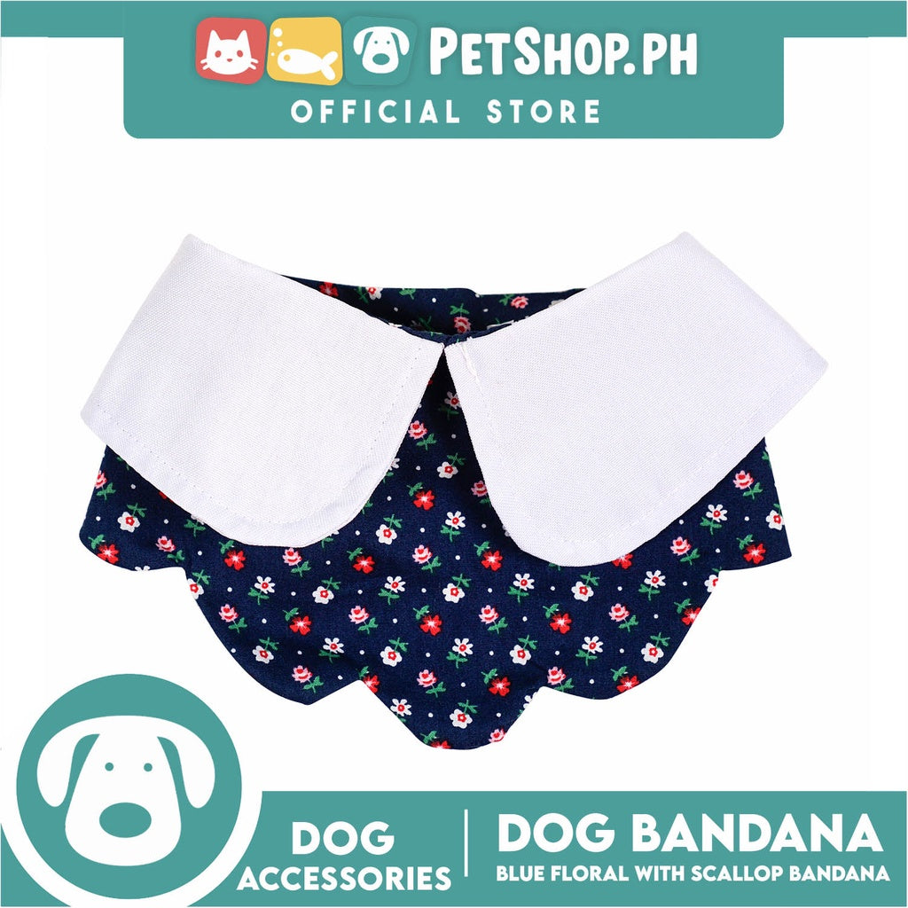 Dog Pet Bandana Blue Floral Scallop Design Washable Scarf (Small)