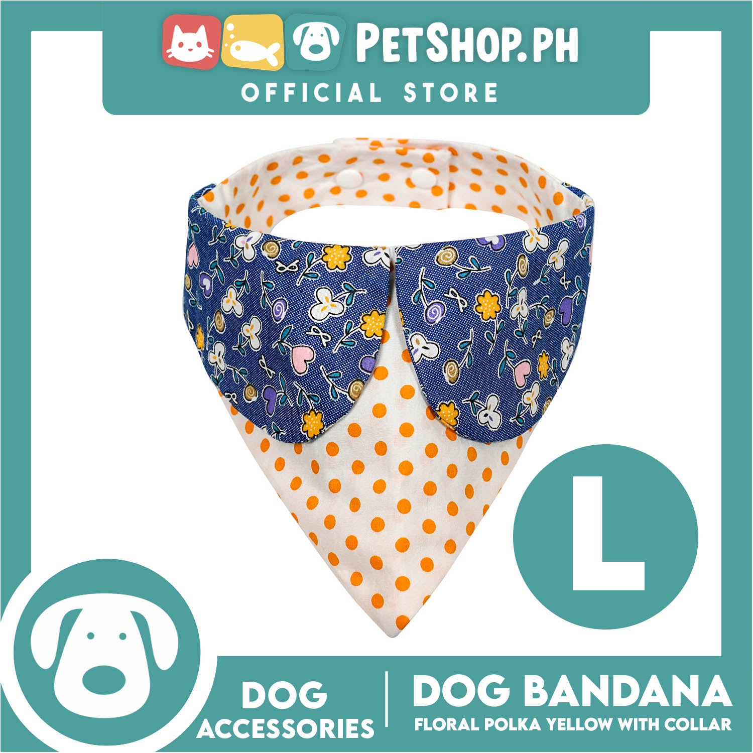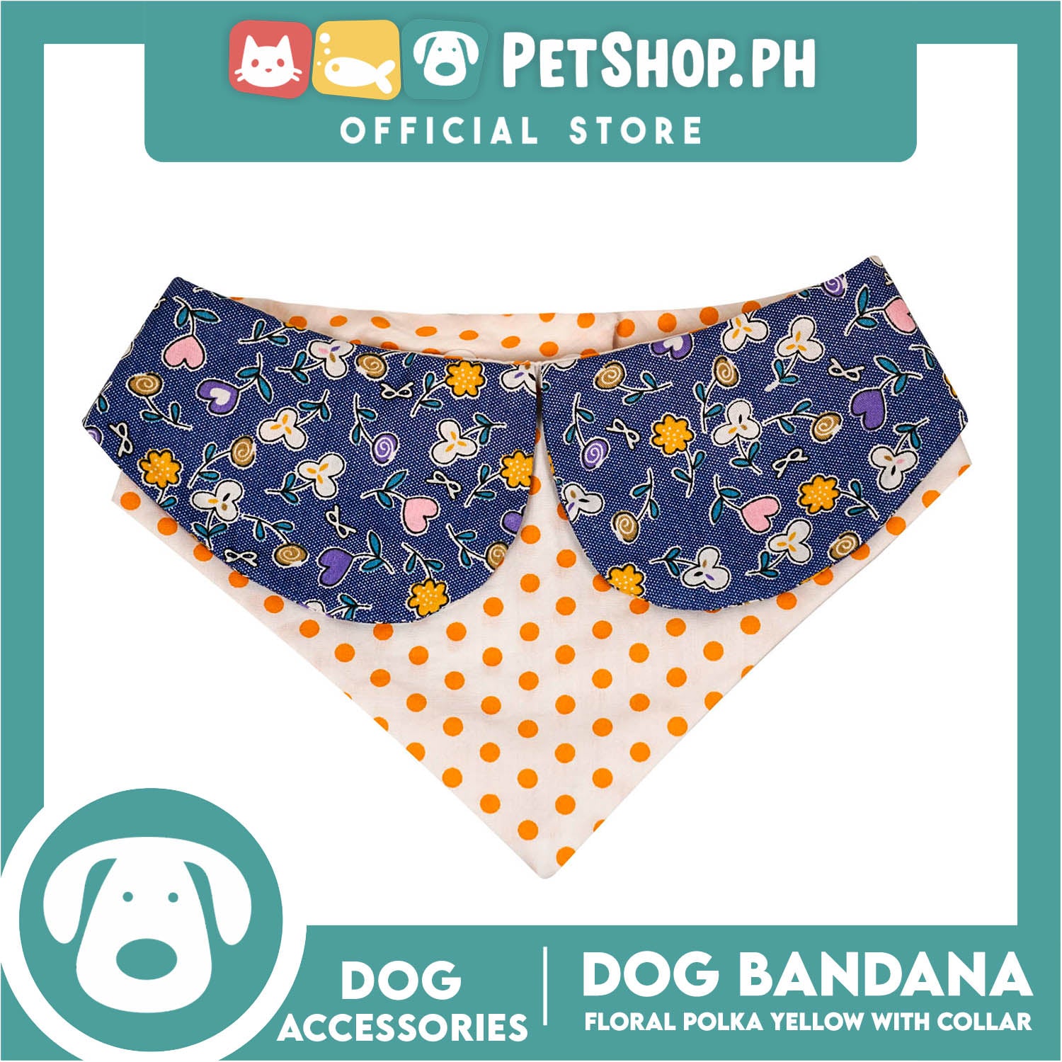 Dog Pet Bandana Blue Floral Yellow Polka Dots Design with Collar Washable Scarf (Large)