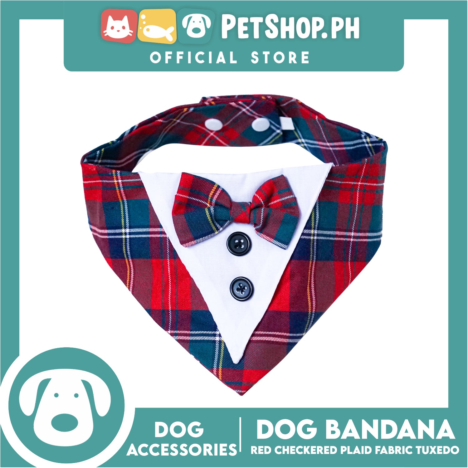 Dog Pet Bandana (Extra Small) Red Checkered Plaid Fabric Tuxedo Design Washable Scarf