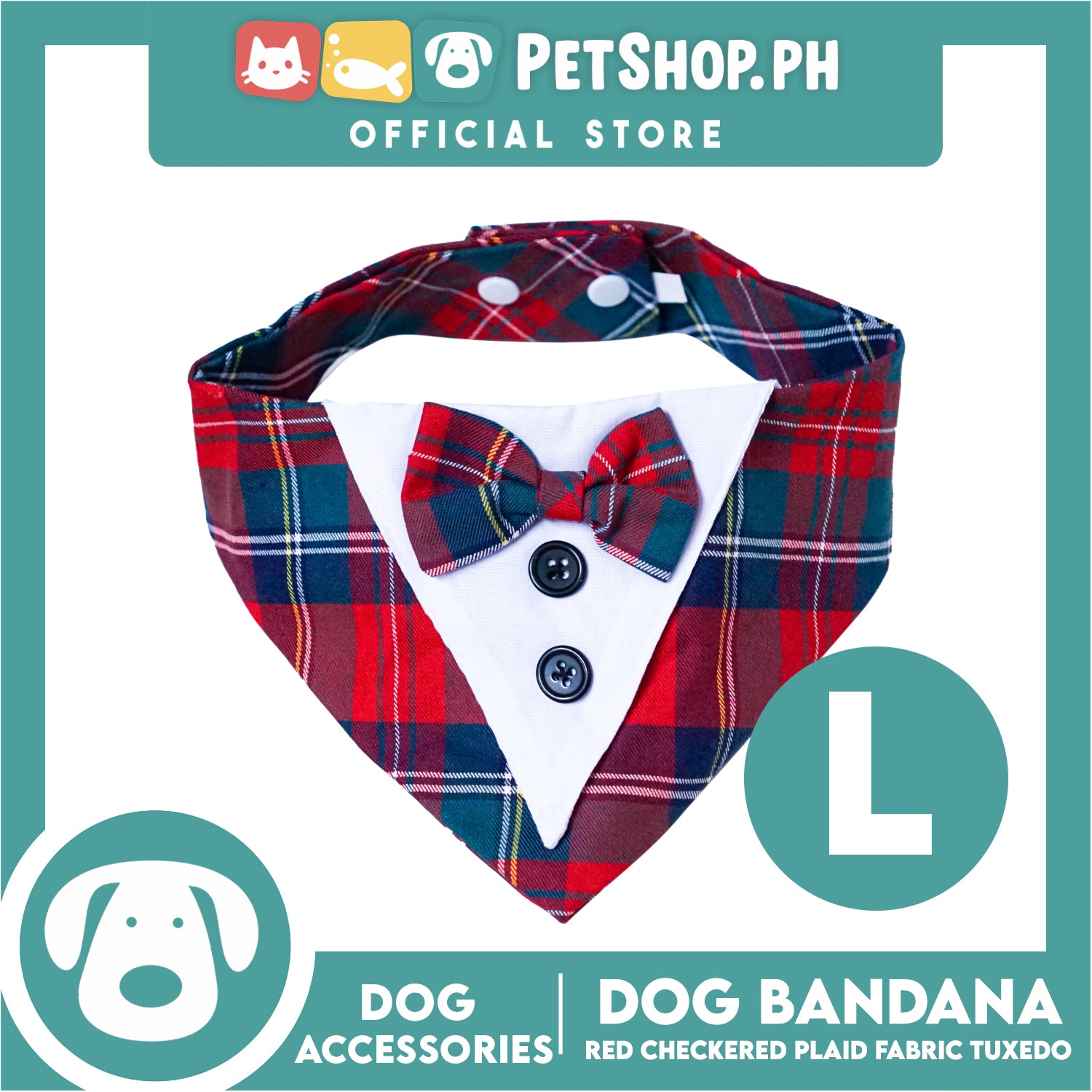 Dog Pet Bandana (Large) Red Checkered Plaid Fabric Tuxedo Design Washable Scarf