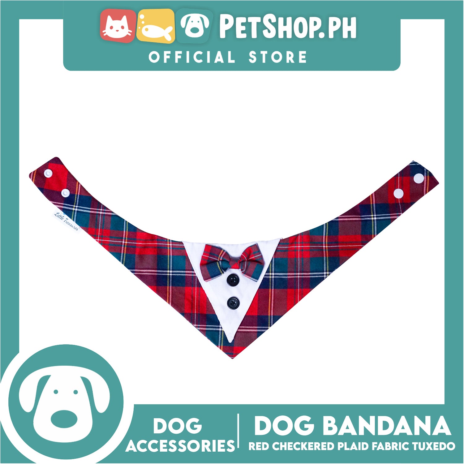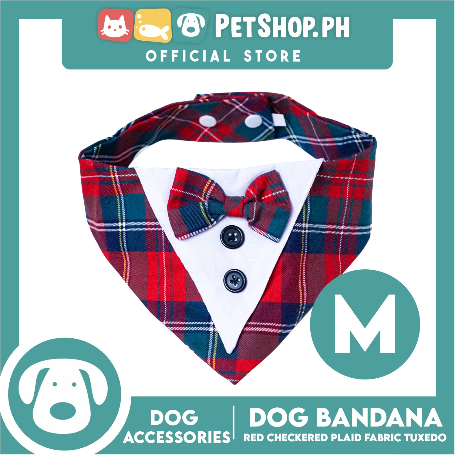 Dog Pet Bandana (Medium) Red Checkered Plaid Fabric Tuxedo Design Washable Scarf