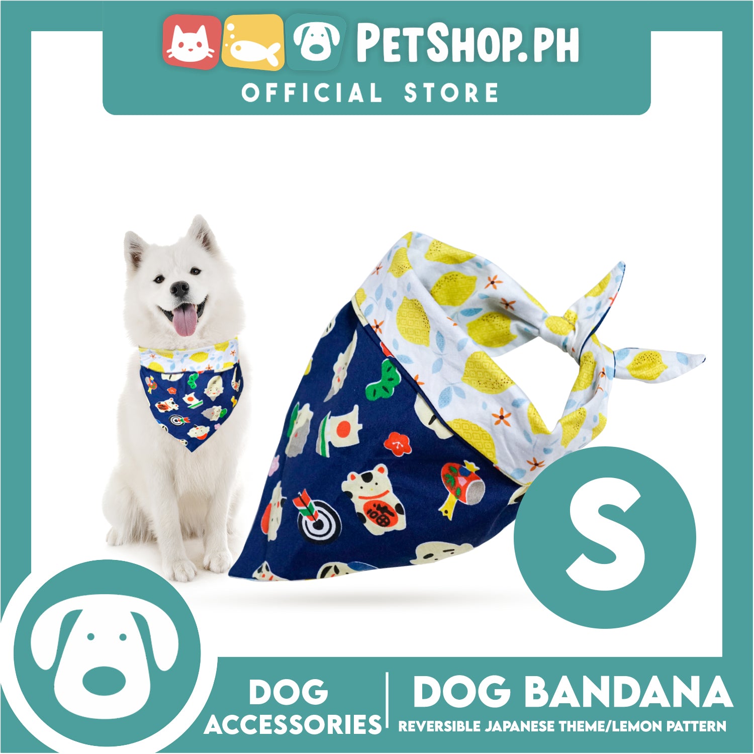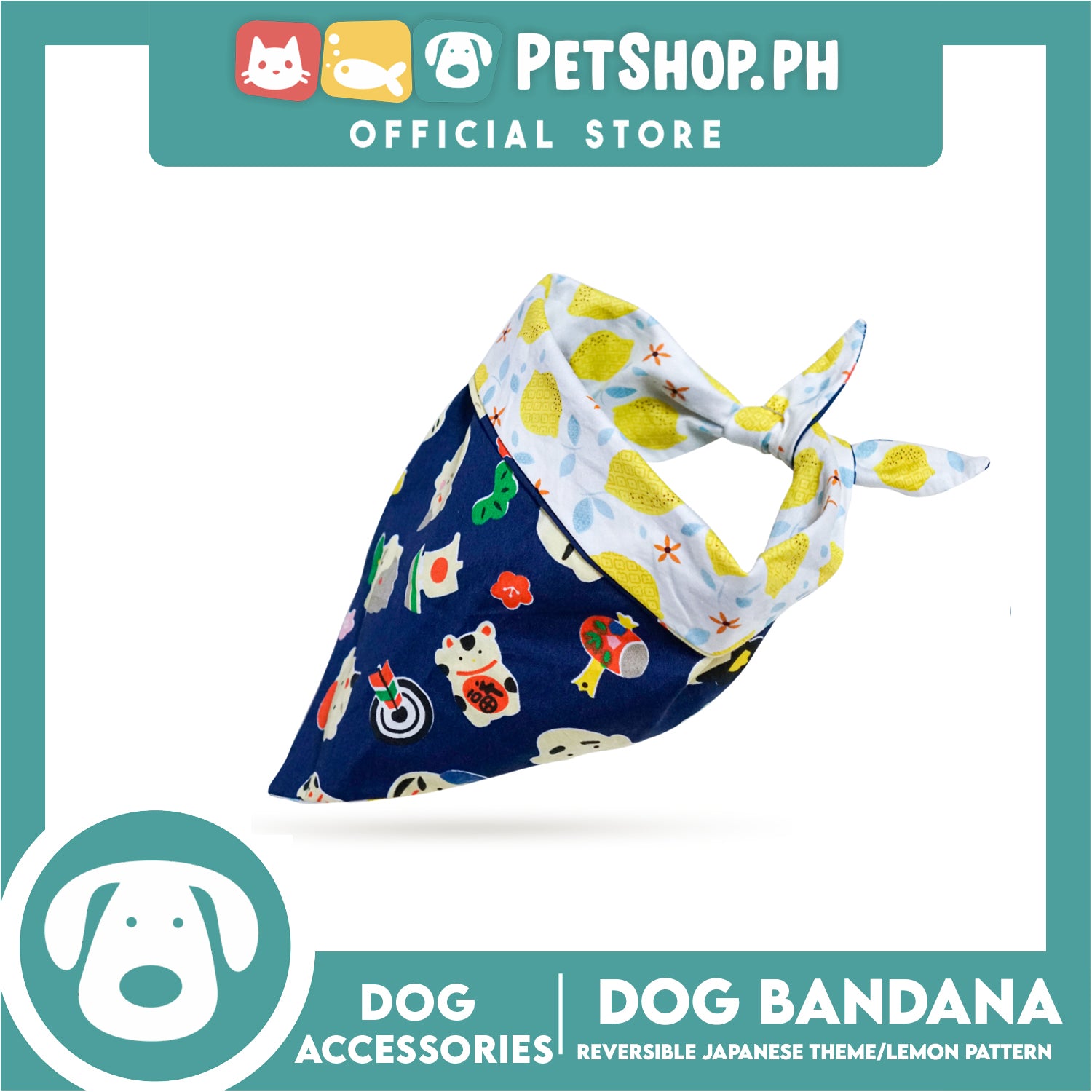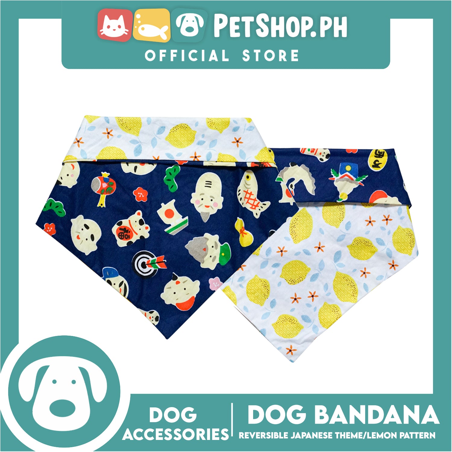 Dog Pet Bandana (Small) Reversible Japanese Theme/Lemon Pattern Washable Scarf