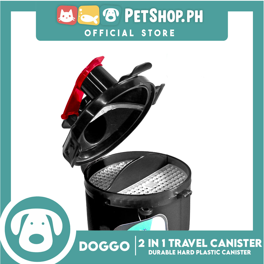 Doggo 2 in 1 Travel Canister, Durable Hard Plastic (Black)