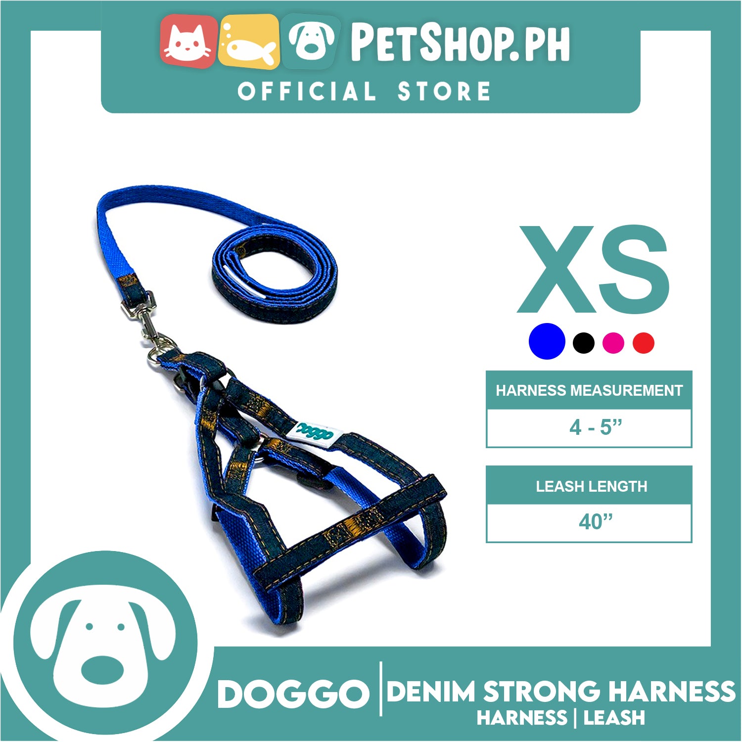 Doggo Denim Strong Harness Extra Small (Blue) Thick Leash and Straps for Your Dog