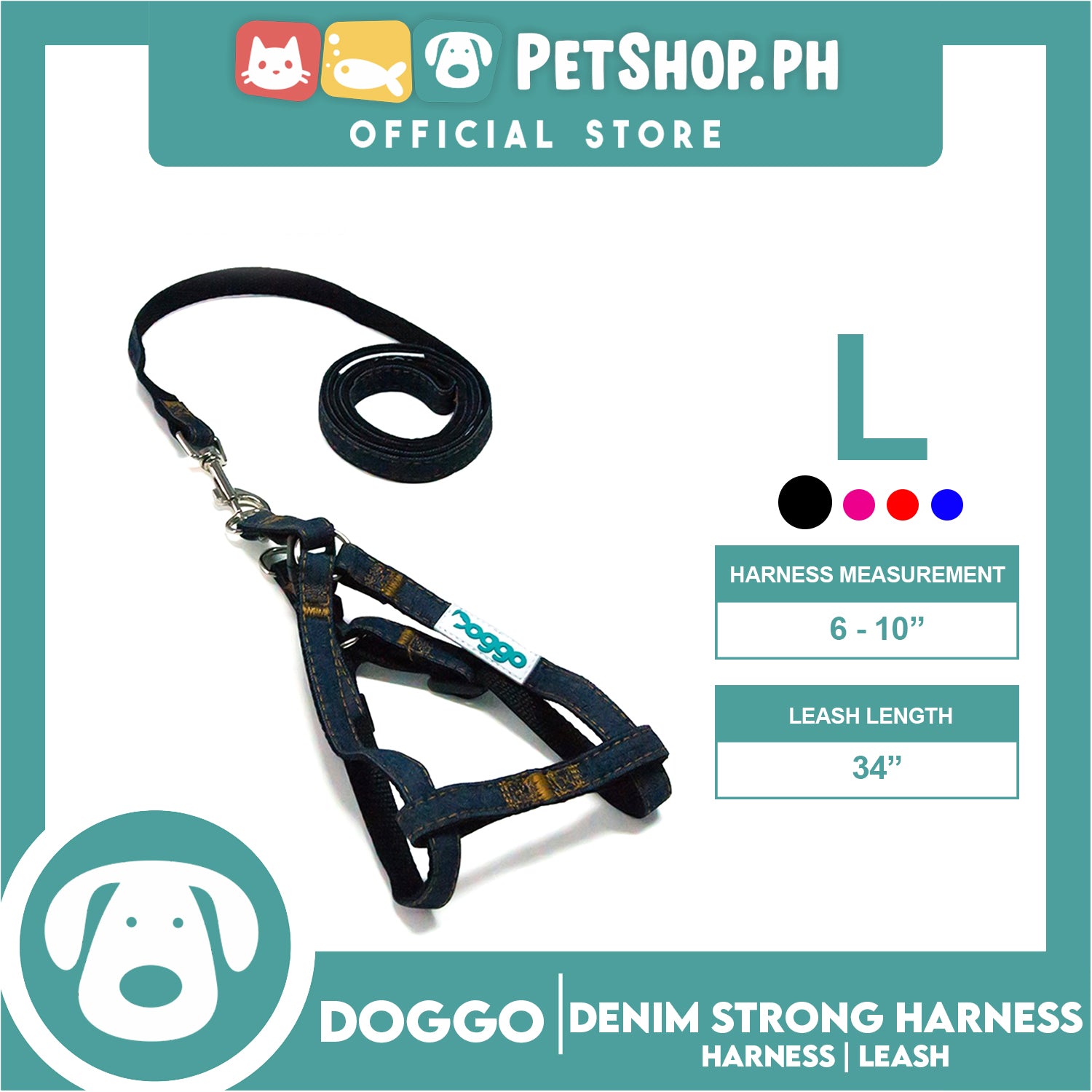Doggo Denim Strong Harness Large (Black) Thick Leash and Straps for Your Dog