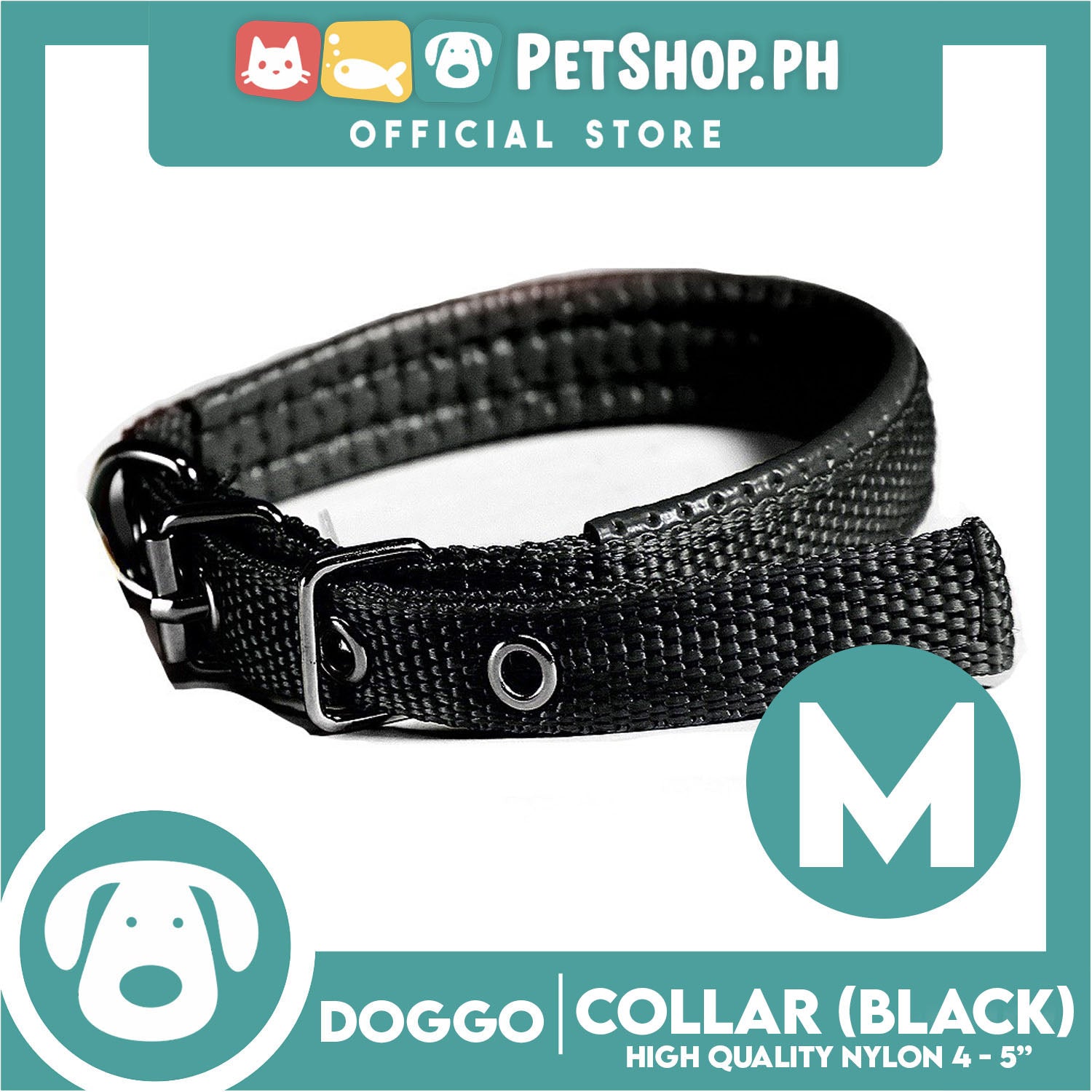 Doggo Dog Collar Adjustable Buckle Medium Size (Black) Collar Nylon for Dog