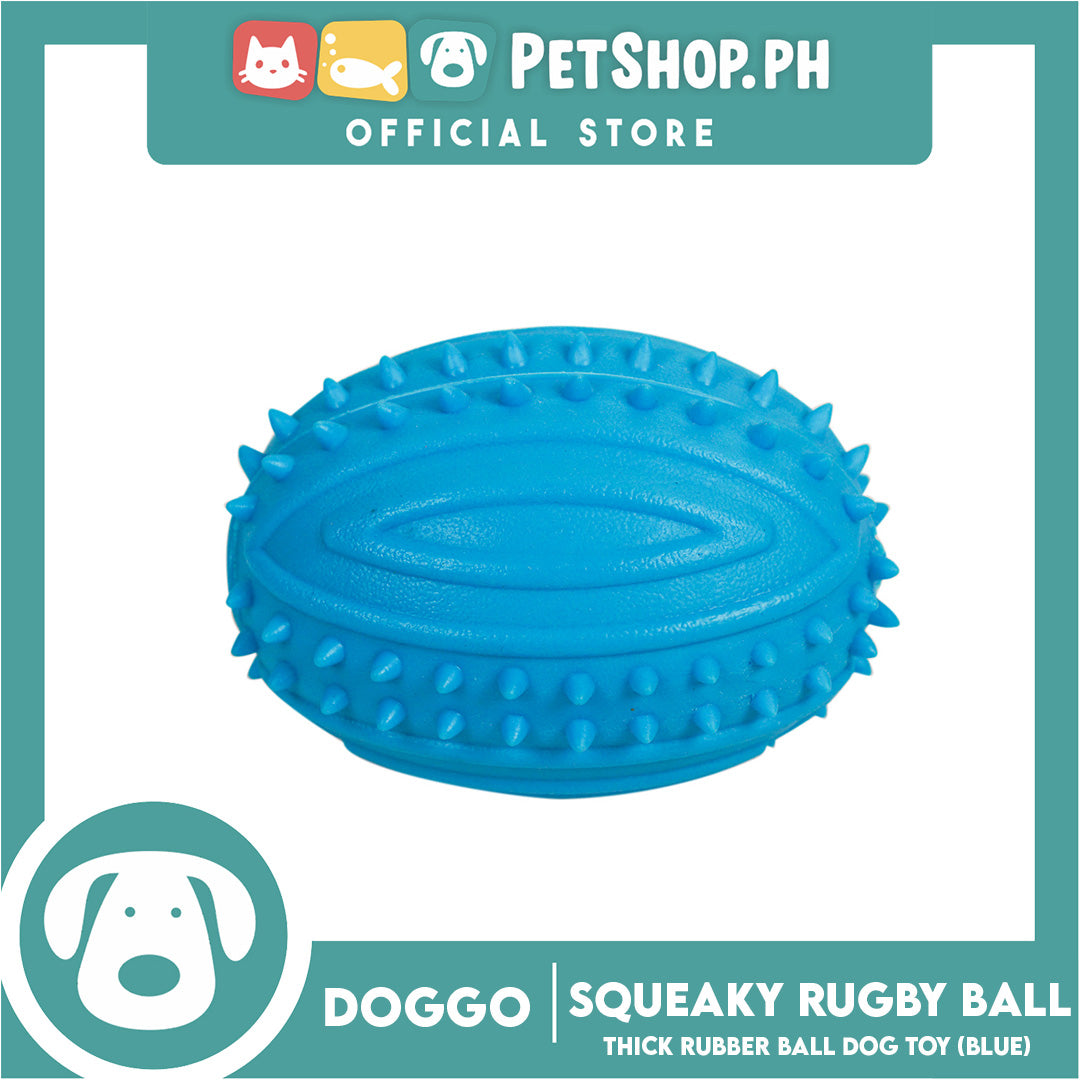 Doggo Dog Toy Squeaky Rugby Ball Thick Rubber (Blue)