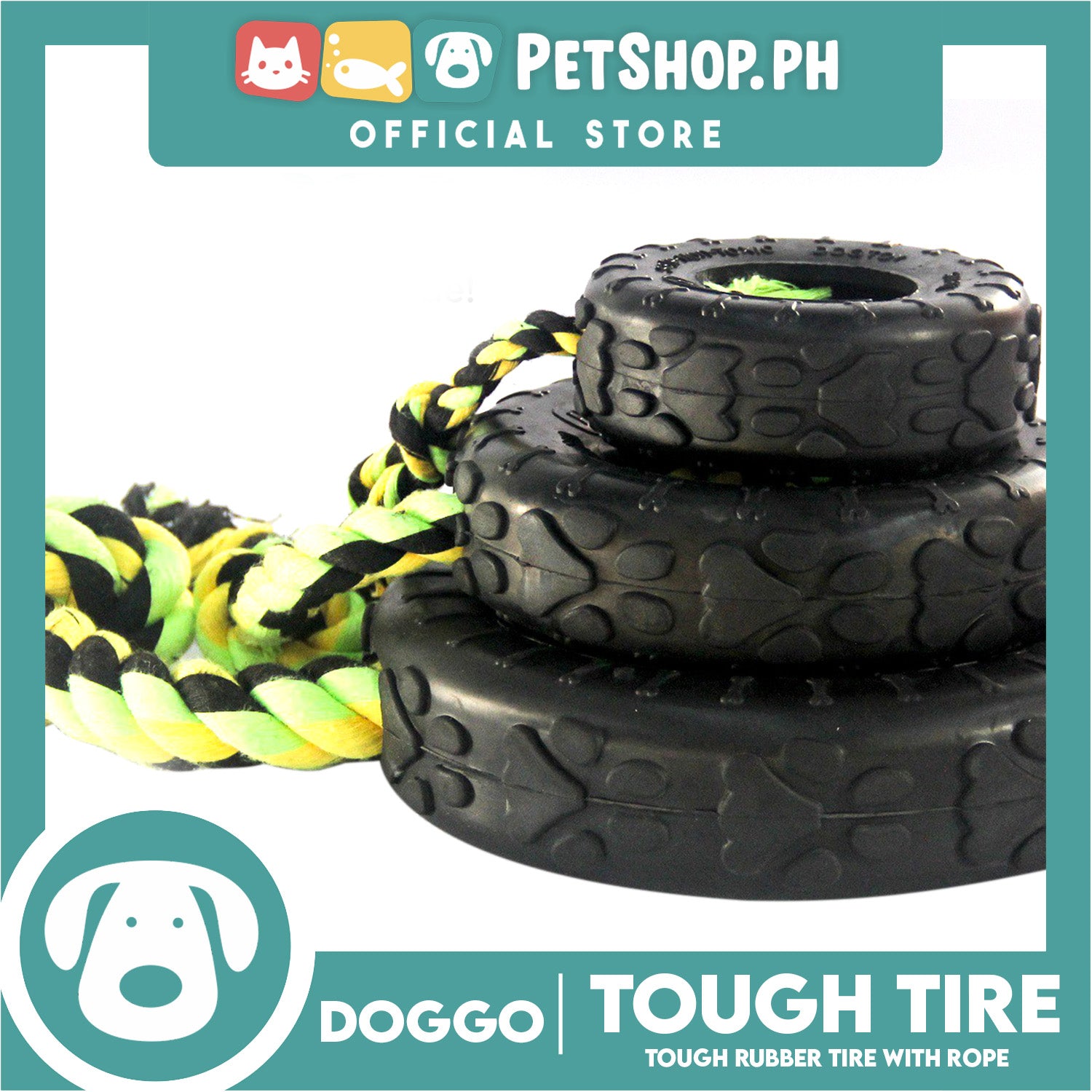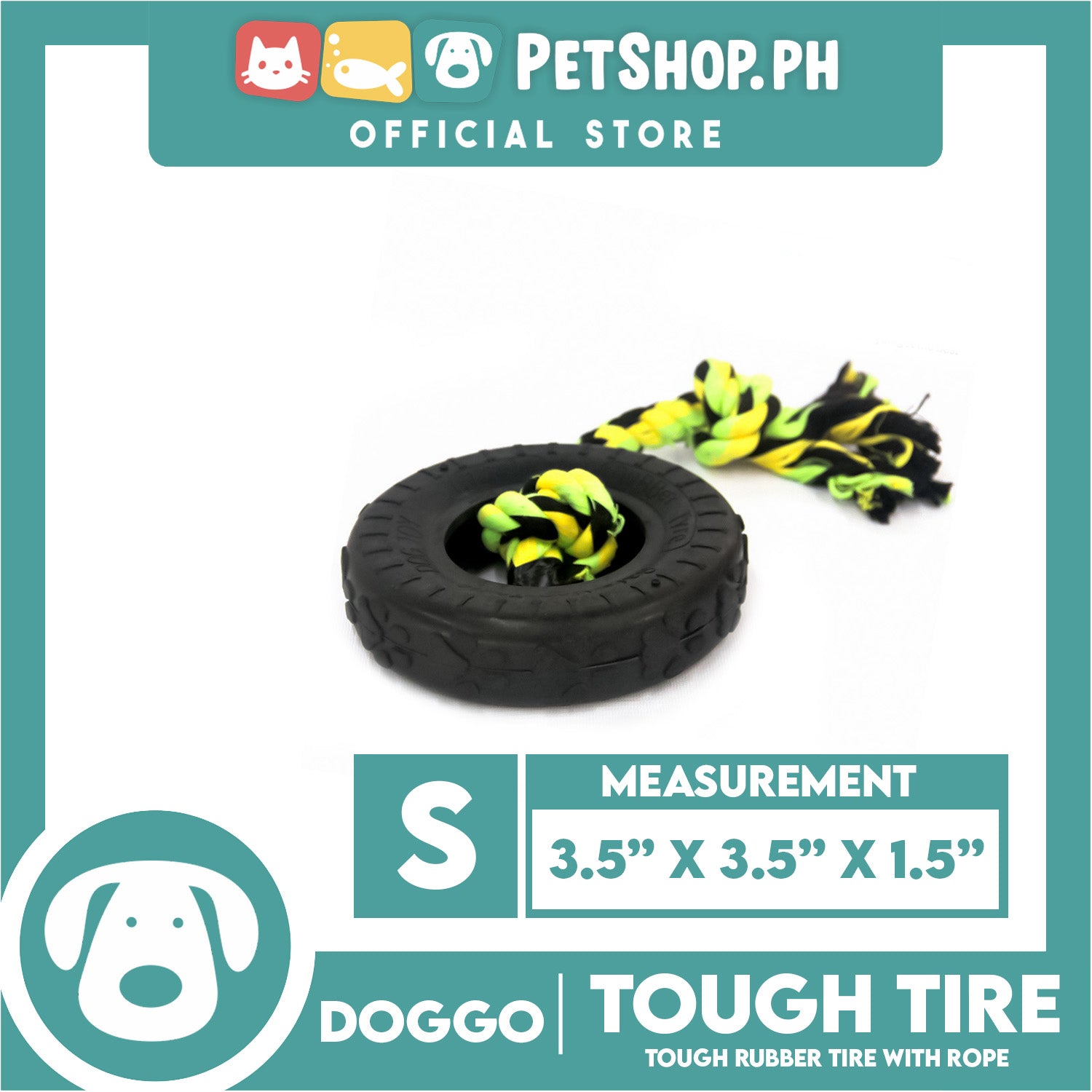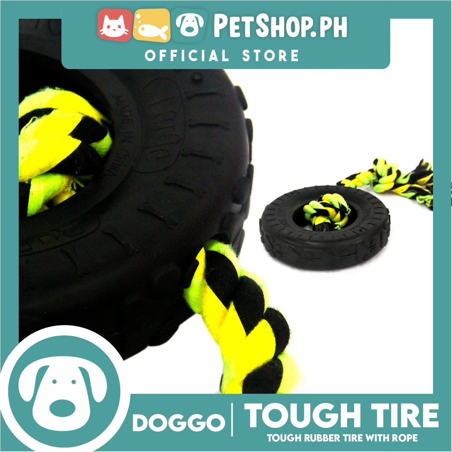 Doggo Dog Toy Tough Tire Rubber with Rope Small Size (Black) Pet Toy Rubber Tire