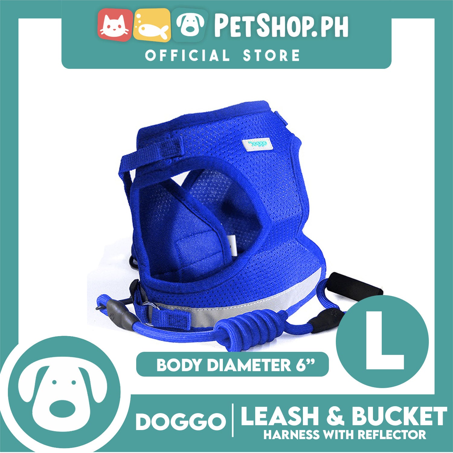 Doggo Leash and Bucket Harness with Reflector Large (Blue) Perfect Set for Your Dog